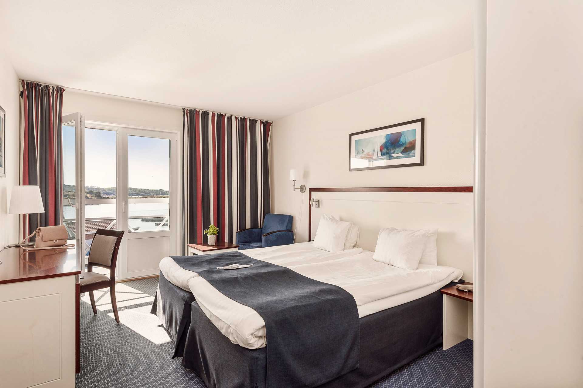 Dobbeltrom, uten uteplass med havutsikt fra vinduet eller fra balkongen. Rommene ligger i hotellets hovedbygning. En dobbeltseng. Mulig med ekstrasenger i køyeseng. Wifi inkludert. Vannkoker. TV. Hårføner. Baderom med dusj og wc. Noen dobbeltrom har balkong, andre mangler uteplass men har en magisk utsikt over havet fra vinduet.