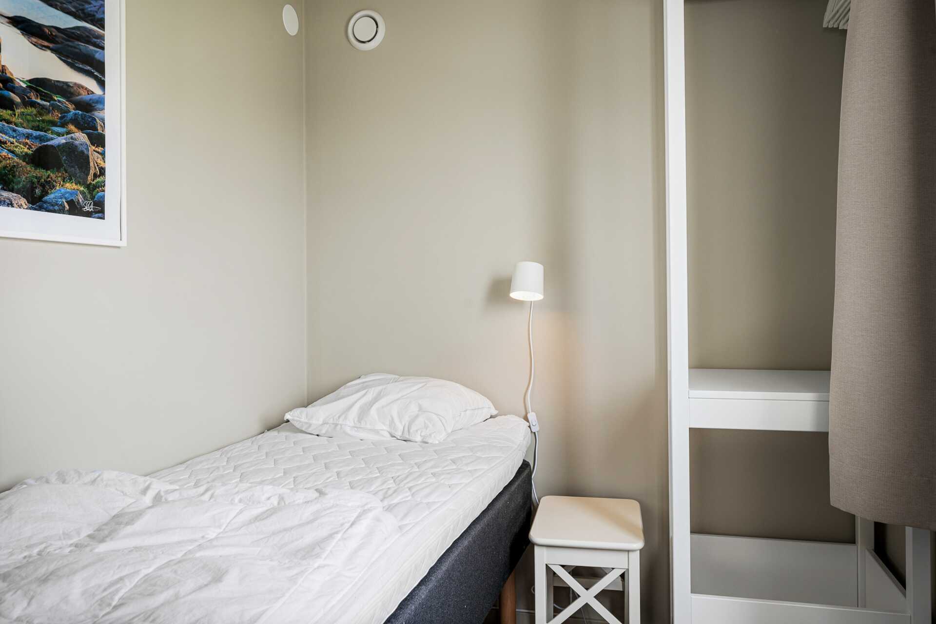TanumStrands 4-sengs hytter med markterrasse. Alle hyttene ligger ved vannet, og mange av dem har havutsikt.Det finnes to typer hytter. En hytte med ett soverom med to enkeltsenger og kombinert stue med minikjøkken hvor det er sovesofa. Den andre varianten er hytte med kombinert soverom med minikjøkken hvor det er to enkeltsenger og to vegghengte køyesenger. Minikjøkken med kjøleskap, fryser, komfyr, stekeovn, vannkoker, kaffetrakter, mikrobølgeovn og enkelt kjøkkenutstyr. Noen hytter har oppvaskmaskin. Spisebord, sofa og TV. Wifi inkludert. Bad med dusj og wc.
