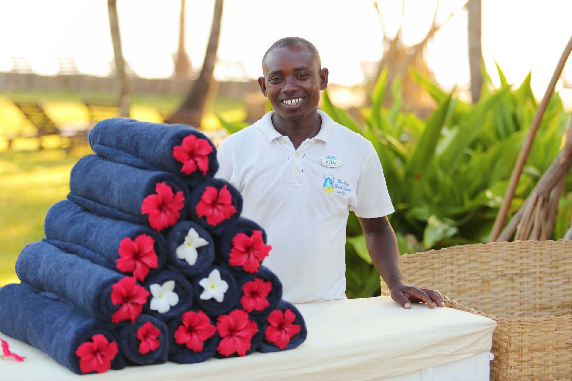 Bluebay Beach Resort & Spa, ditt paradis rett ved den hvite sandstranden på østkysten av Zanzibar. Her kan du ta lange spaserturer langs vannet og utforske hotellets restauranter med smakfulle retter fra all verdens beste kjøkken. Prøv vannsport som windsurfing, kajakkpadling og SUP, eller dra på dybhavsfiske i Det indiske hav. Slapp av i det luksuriøse spaet, tren i treningsrommet, eller nyt fredelige dager i vakre og eksotiske omgivelser.