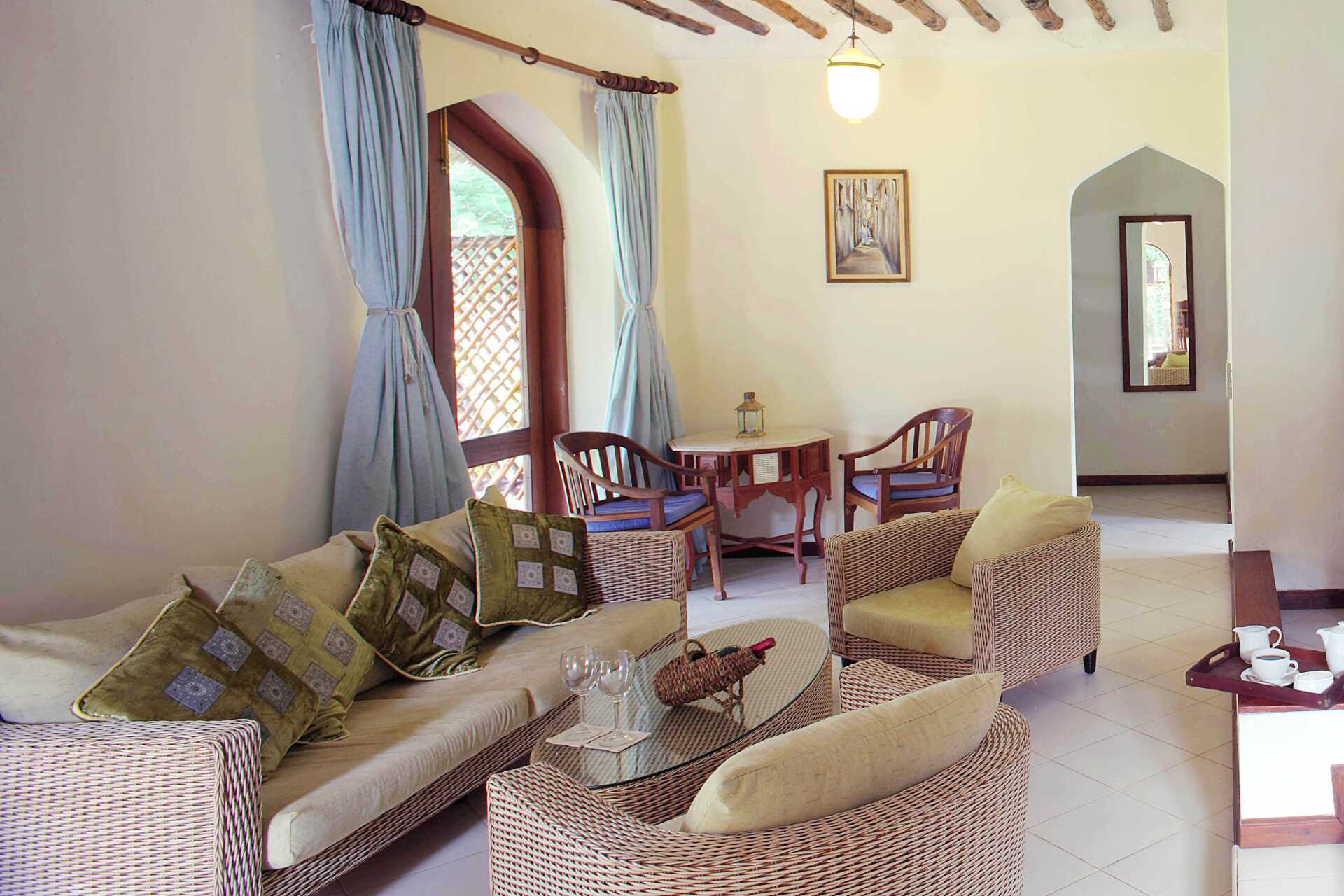 Juniorsuite med balkong eller terrasse. Rommene ligger i hotellets hage. Nivåforskjeller i rommet med to trinn. To dobbeltsenger. Mulig med ekstrasenger i ordinære senger. Myggnett over alle senger. Wifi, luftkondisjonering og safe inkludert. Takvifte. Kjøleskap. Vannkoker samt kaffe og te. TV. Hårføner. Bad med jacuzzi, dusj og wc. Rengjøring 7 ggr/uke.