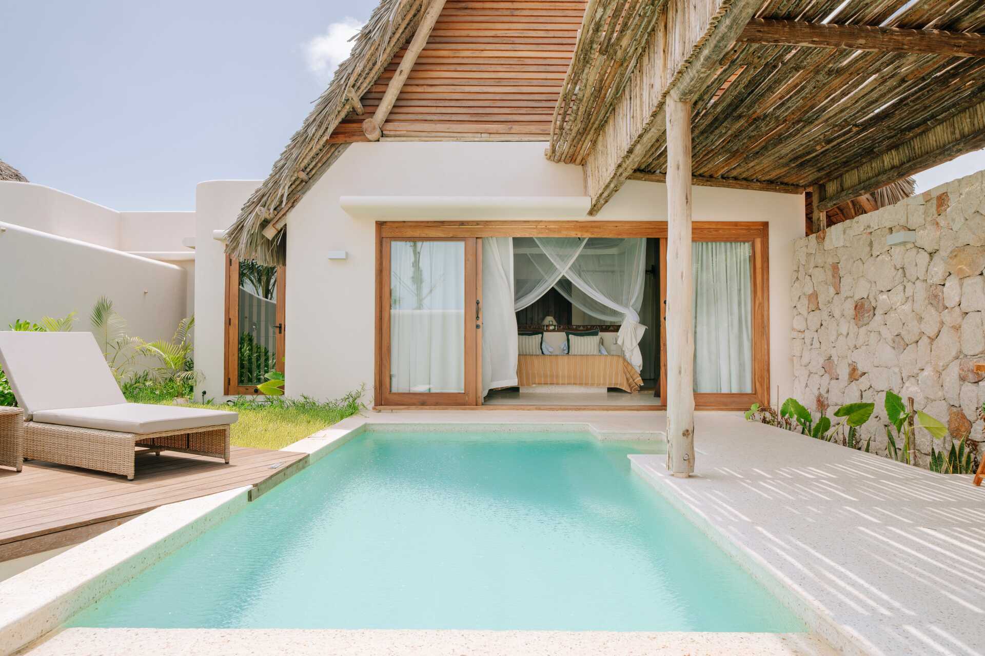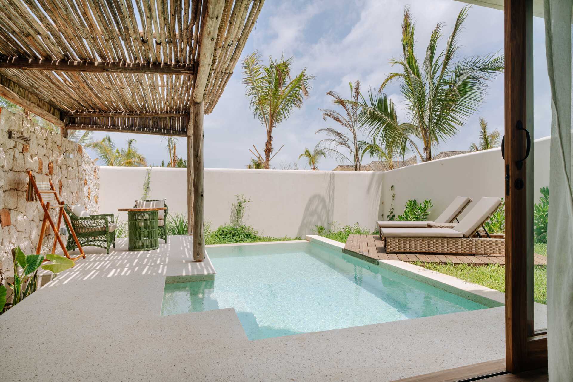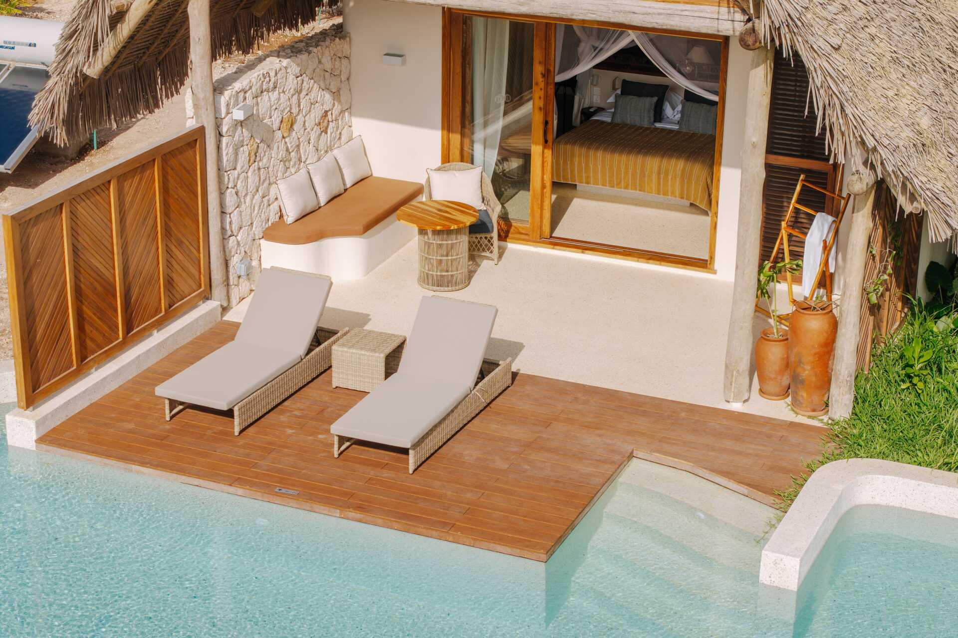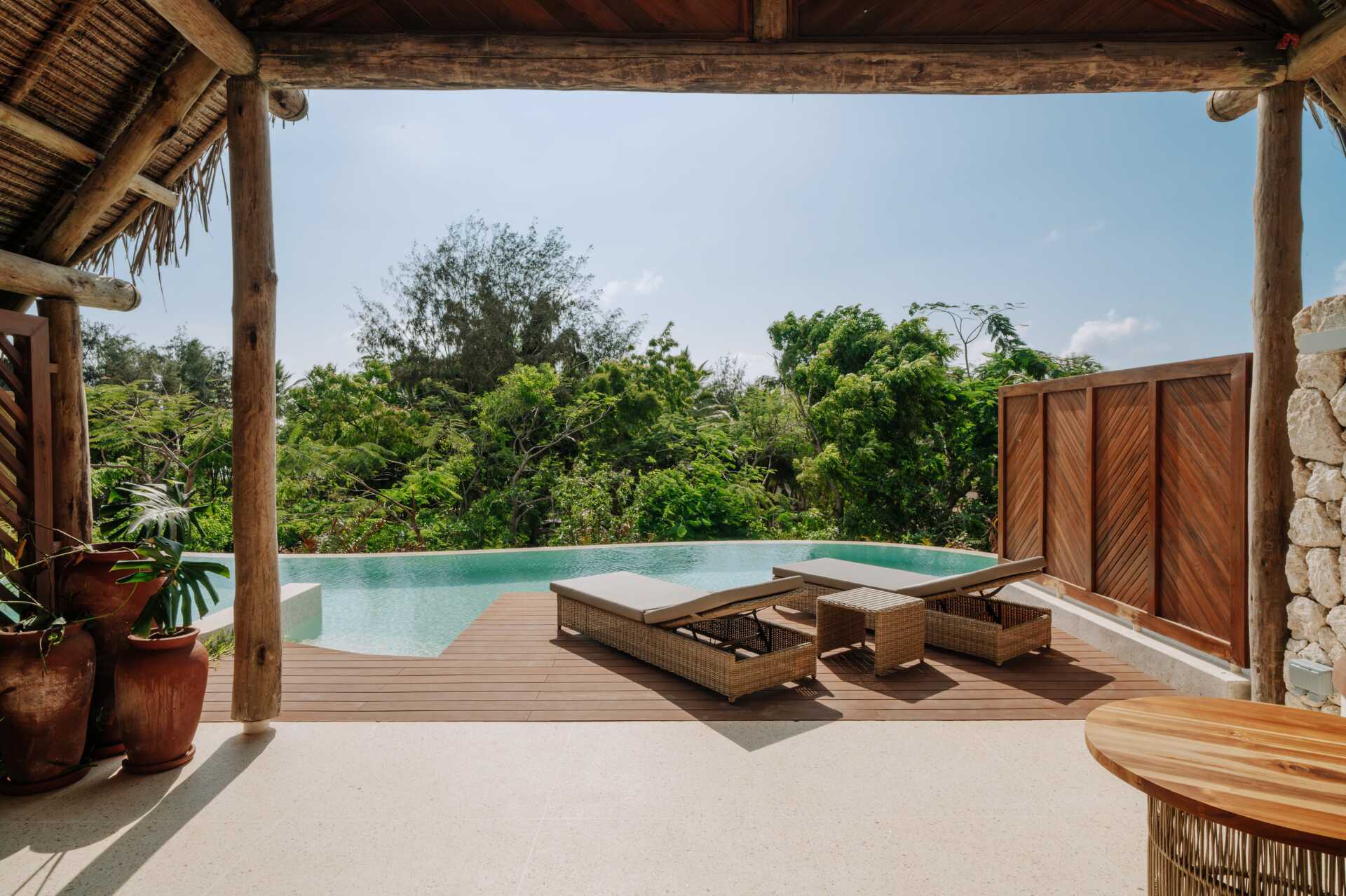 Ettroms villa med utgang delt evighetsbasseng fra terrassen. Villaene ligger cirka 5 minutters gange fra stranden. Solsenger samt stoler og bord på terrassen. En dobbeltseng (myggnett over sengen). Wifi, luftkondisjonering og safe inkludert. Takvifte. Minibar. Vannkoker samt kaffe og te. Hårføner. Bad med to servanter, utendørs dusj og separat wc. Rengjøring 7 ggr/uke.