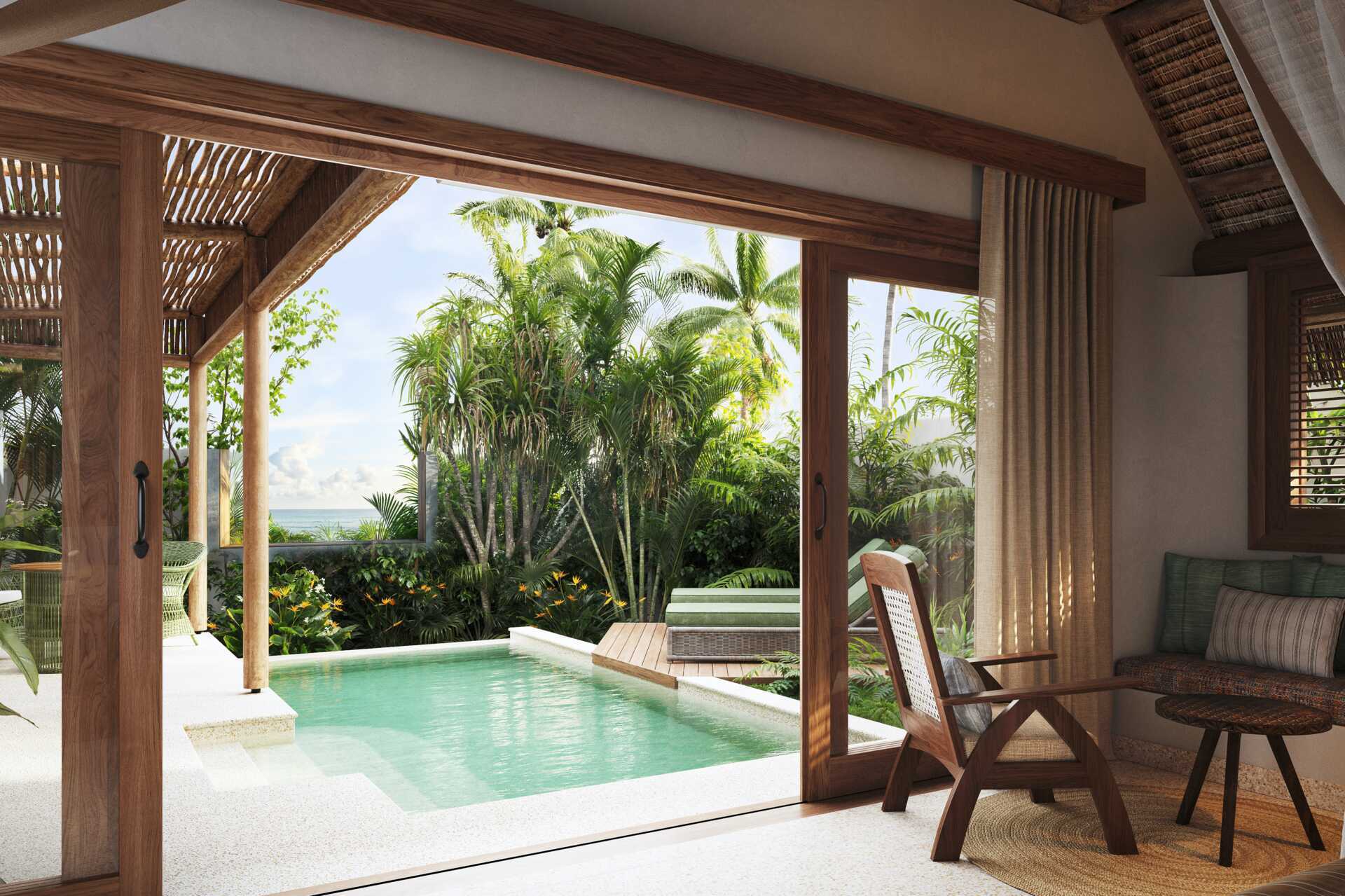Villa med ett soverom og tilgang til et felles evighetsbasseng fra terrassen. Rommene ligger omtrent 5 minutters gange fra stranden. Solsenger samt stoler og bord på terrassen. En dobbeltseng (myggnett over sengen). Wifi, luftkondisjonering og safe inkludert. Takvifte. Minibar. Vannkoker samt kaffe og te. Hårføner. Bad med to vasker, utendørs dusj og separat wc. Rengjøring 7 ggr/uke.
