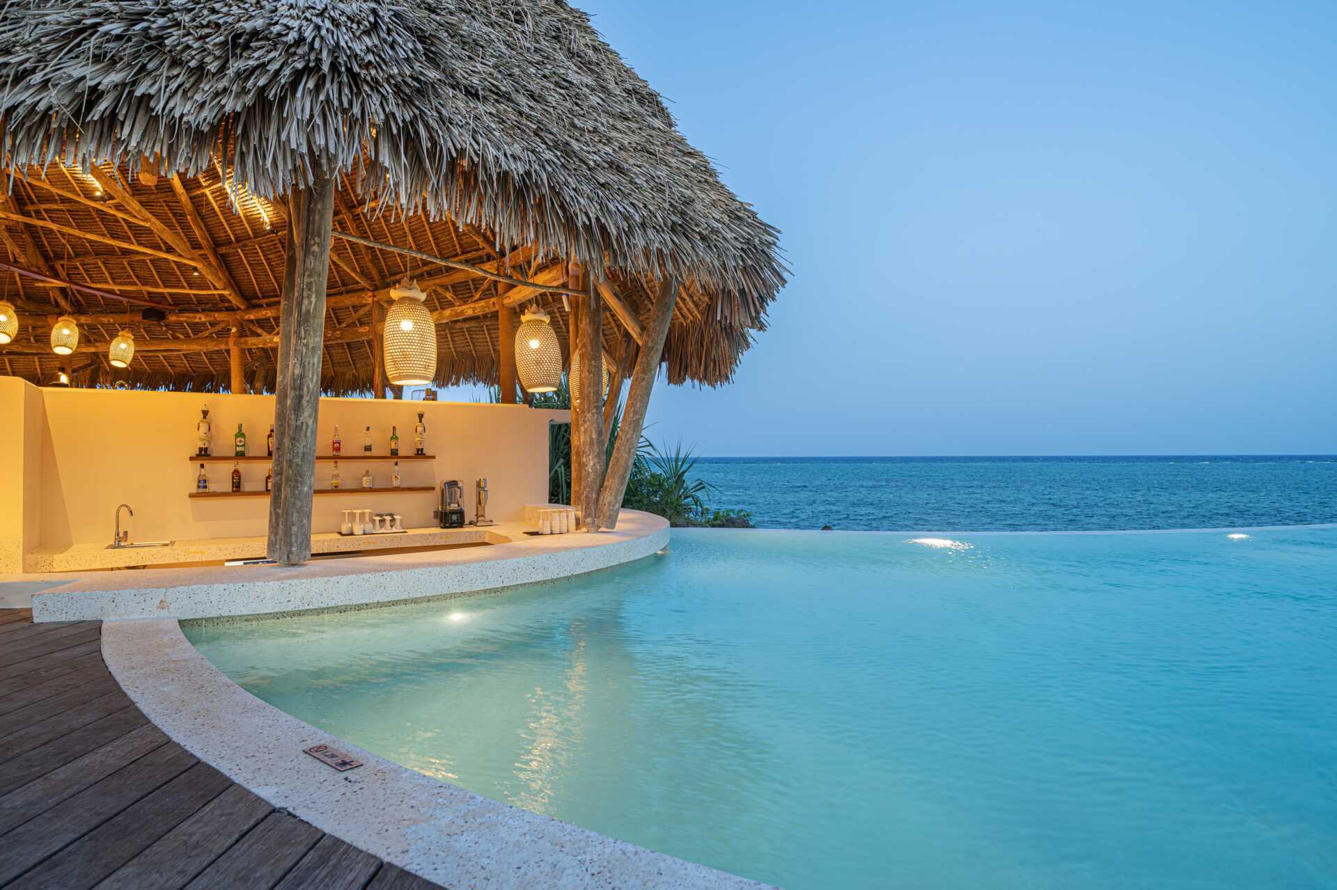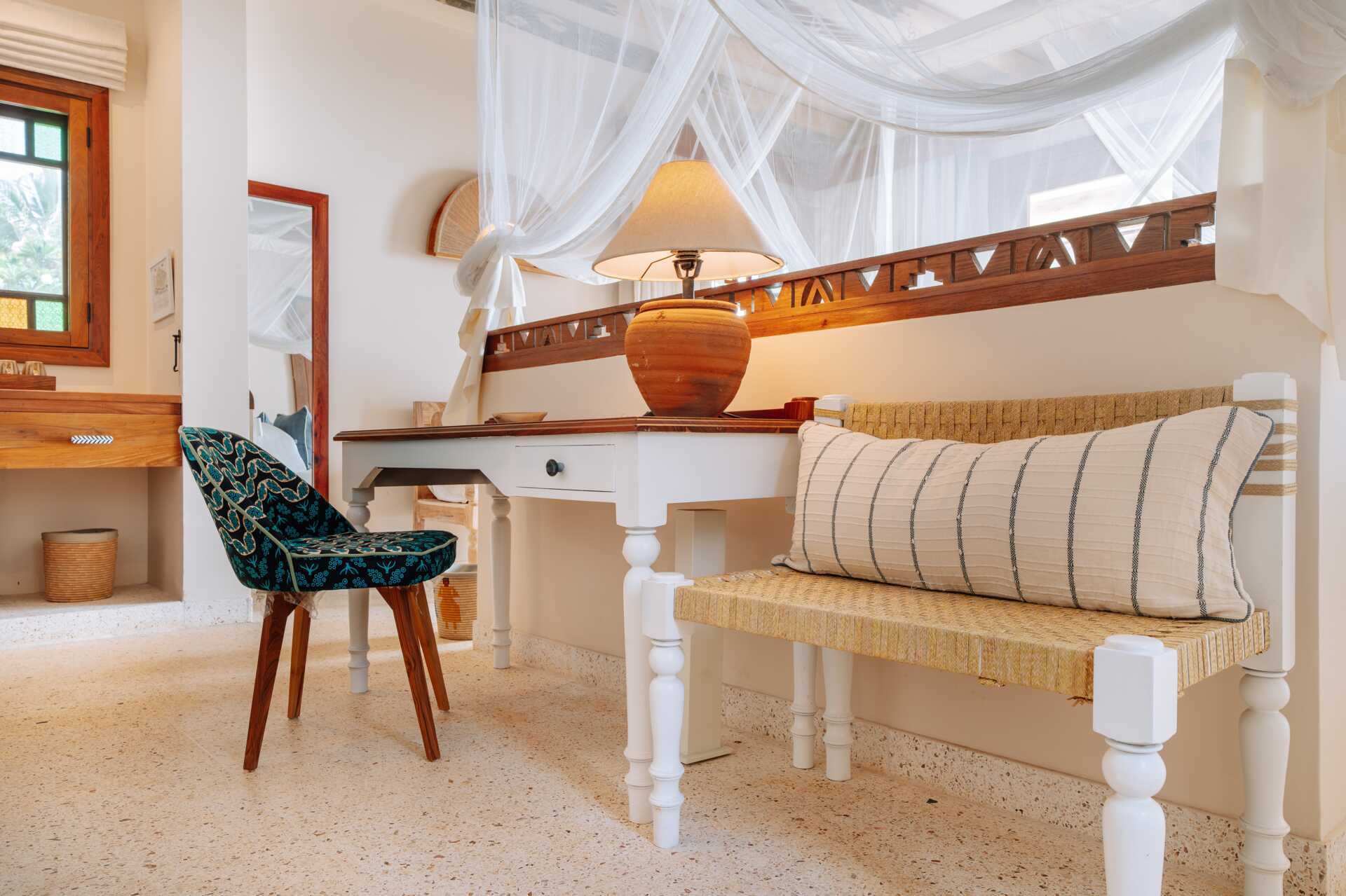 Seafront Villa i to etasjer, med to terrasser og et lite plunge pool som vender mot havet. Villaene ligger omtrent 1 minutts gange fra havet. I første etasje er det en terrasse, utendørs dusj og en hengekøye. En trapp opp er det et soverom med en dobbeltseng, en stor terrasse med et plunge pool og solsenger. Wifi, luftkondisjonering og safe inkludert. Takvifte. Minibar. Vannkoker samt kaffe og te. Hårføner. Bad med to servanter, dusj og separat wc. Rengjøring 7 ggr/uke.