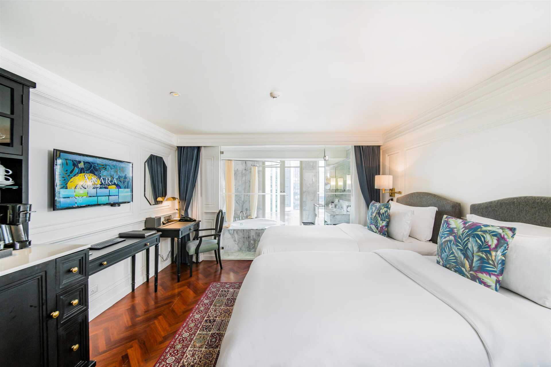 Deluxerom uten uteplass. En dobbeltseng eller to bredere enkeltsenger. Mulig med ekstraseng i ordinære senger. Wifi, luftkondisjonering og safe inkludert. Kjøleskap - to flasker vann er inkludert og etterfylles hver dag. Vannkoker samt kaffe og te. TV. Bluetooth høyttaler. Badekåper og tøfler. Hårføner. Dusj og wc. Rengjøring 7 ggr/uke.