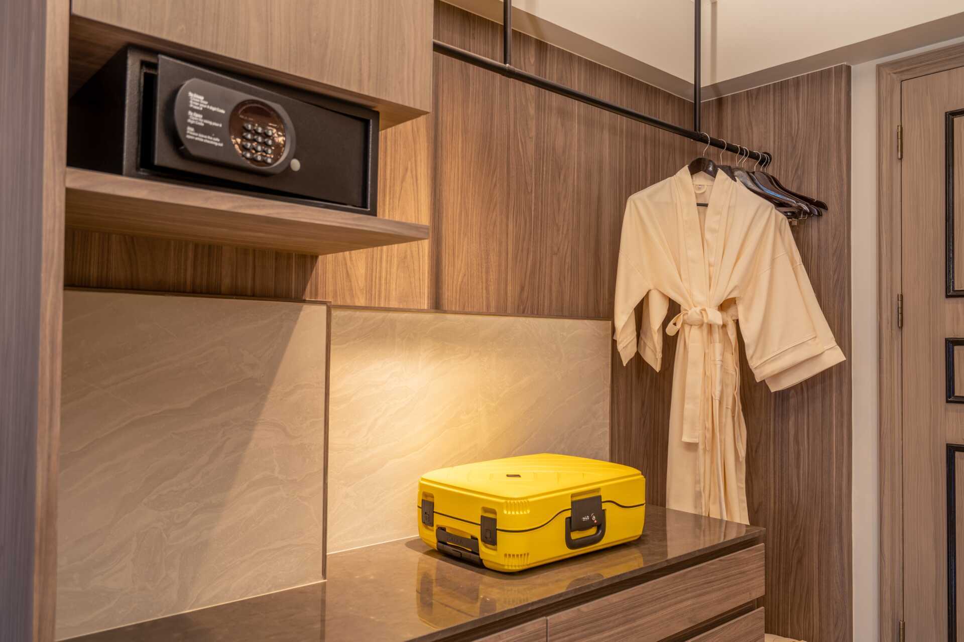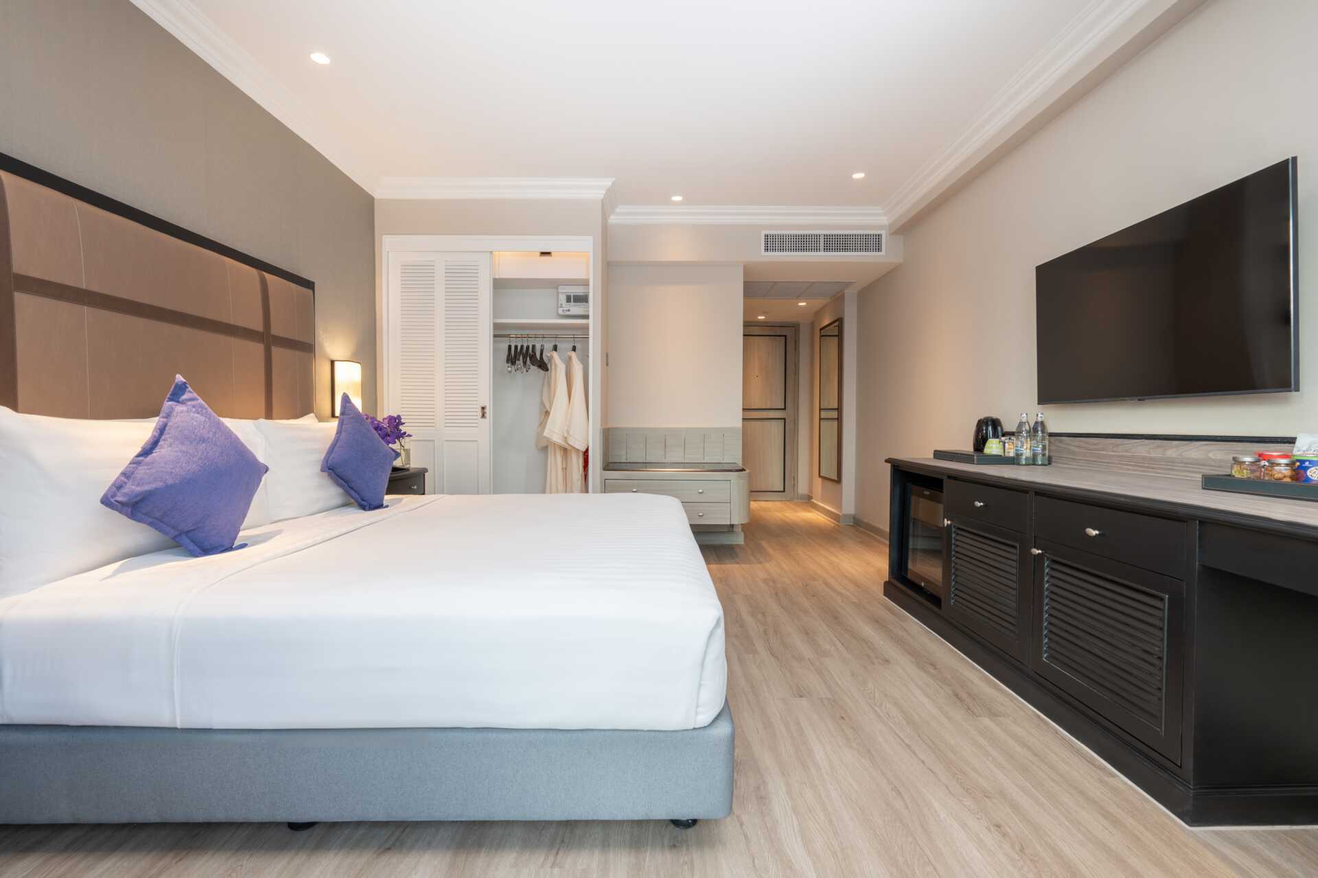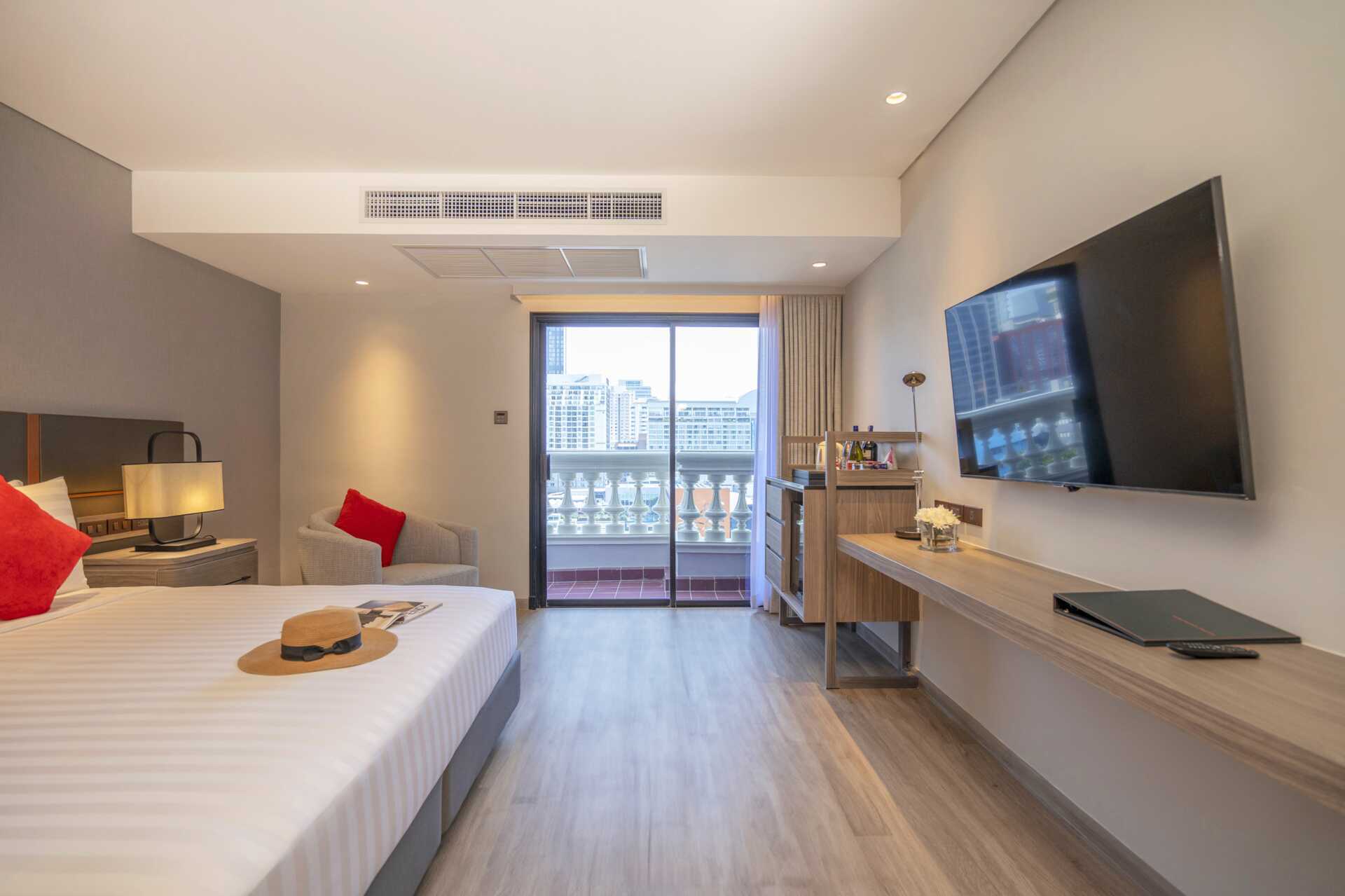 Deluxerom, uten uteplass, noen med utsikt over byen. Rommene med utsikt ligger i 17. til 25. etasje, og de andre rommene ligger i 9. til 16. etasje. En dobbeltseng eller to enkeltsenger. Mulig med ekstraseng i feltseng. Wifi, luftkondisjonering og safe inkludert. Kjøleskap. Vannkoker samt kaffe og te. TV. Strykejern og strykebrett. Badekåper og tøfler Hårføner. Dusj og wc. Rengjøring 7 ggr/uke.