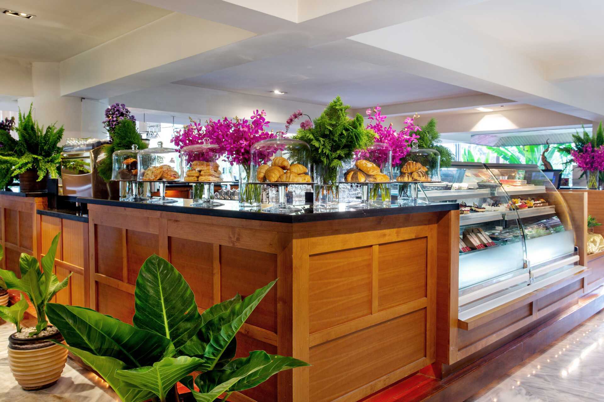 Åtte barer, lounger og restauranter. Restauranten The Terrace@72 serverer frokost, lunsj og middag, og her kan du nyte deilig thailandsk, kinesisk, indisk og japansk mat samt noen retter fra vestlige kjøkken. The Waves er en à la carte-restaurant som serverer frokost, lunsj og middag med utsikt over elven Chao Phraya. Dessert Dreams serverer lettere retter, Afternoon Tea og, som navnet tilsier, desserter. Hvis du har lyst på virkelig god kinesisk mat bør du ta turen til restauranten Ah Yat Abalone Forum i andre etasje. Ved bassenget ligger er det Sala Thai Pool Bar hvor du kan kjøpe lette lunsjretter og drinker, og Lobby Loungen serveres også småretter og drikke til langt ut på de små timer.