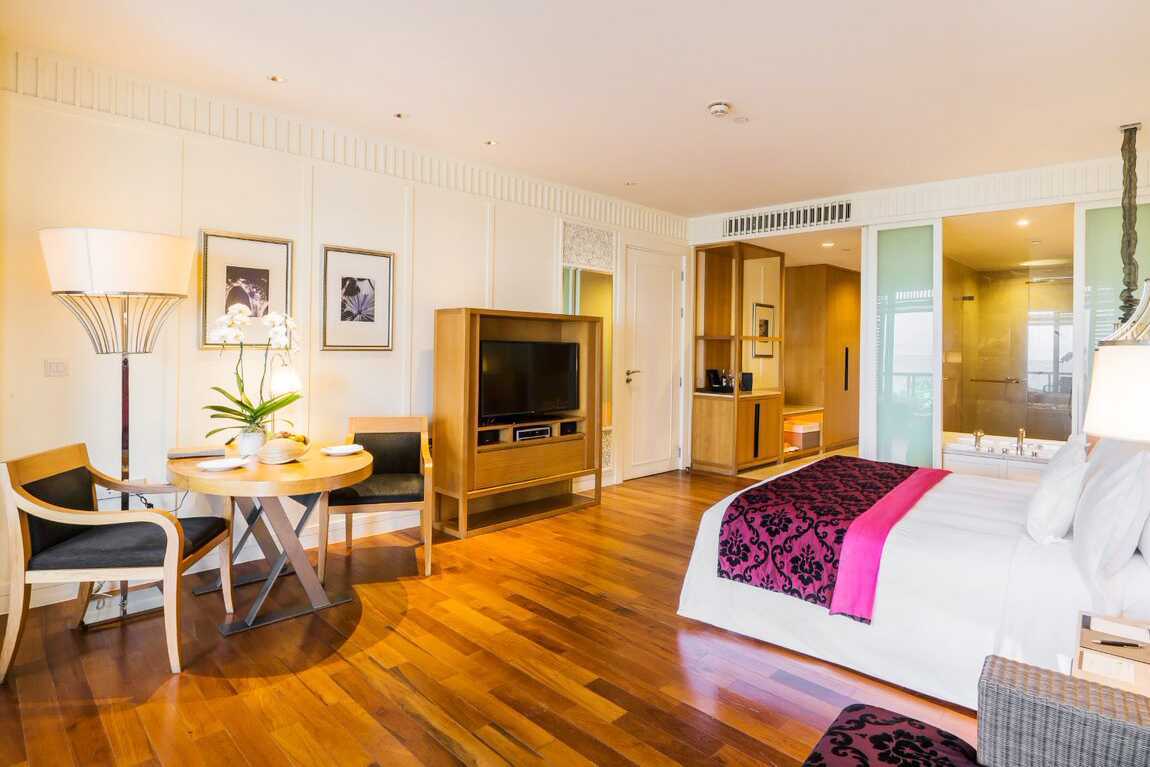 Garden Room med balkong eller terrasse. På balkongen er det en dagseng og bord og stoler. Rommene ligger i Beach Wing og kalles Premium Rooms. En dobbeltseng eller to enkeltsenger. Mulig med ekstraseng. Fjerde person må være et barn og sove i eksisterende senger. Wifi, luftkondisjonering og safe er inkludert. Minibar, en flaske vann per dag inkludert. Vannkoker samt kaffe og te. TV. Strykejern og strykebrett. Badekåper og tøfler. Hårføner. Skillevegg mellom soverom og bad. Baderomsartikler. Badekar, separat dusj og wc. Barn under 2 år regnes inn i maksantallet i rommet. Rengjøring 7 ggr/uke.