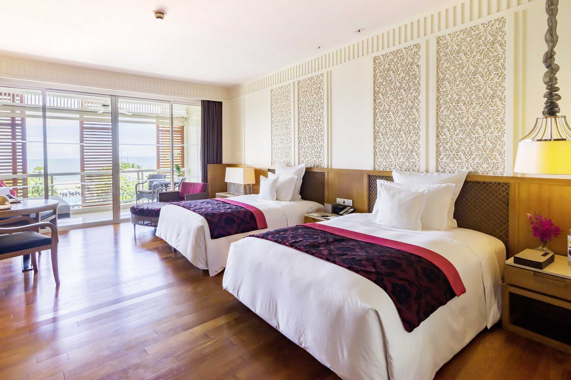 Deluxerom med balkong eller terrasse, noen med bassengutsikt. På balkongen er det en dagseng og bord og stoler. Rommene ligger i Beach Wing og kalles Premium Rooms. En dobbeltseng eller to enkeltsenger. Mulig med ekstraseng. Fjerde person må være et barn og sove i ordinære senger. Wifi, luftkondisjonering og safe er inkludert. Minibar, en flaske vann per dag inkludert. Vannkoker samt kaffe og te. TV. Strykejern og strykebrett. Badekåper og tøfler. Hårføner. Skillevegg mellom soverom og bad. Baderomsartikler. Badekar, separat dusj og wc. Barn under 2 år regnes inn i maksantallet i rommet. Rengjøring 7 ggr/uke.