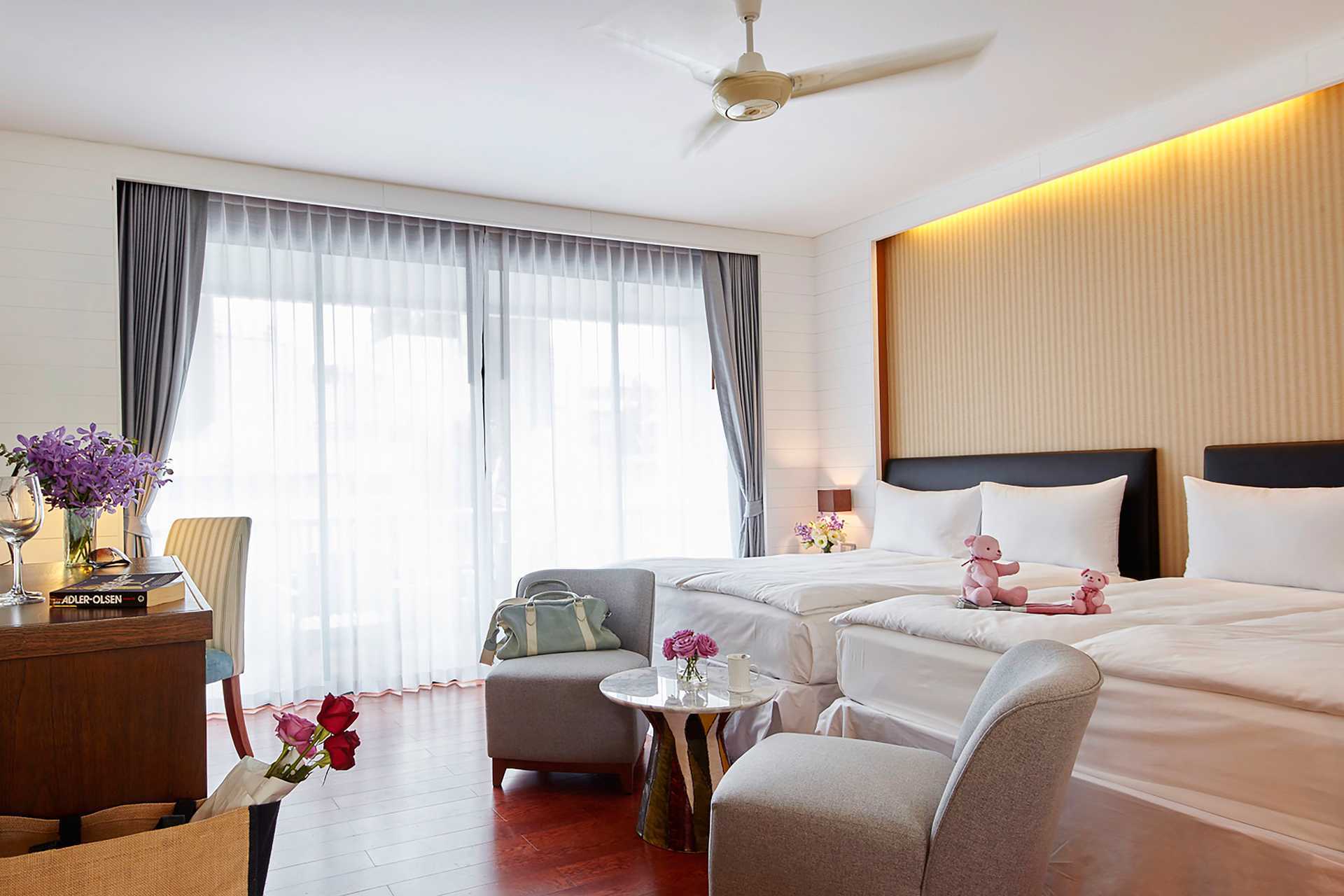 Superiorrom med balkong. En dobbeltseng eller to enkeltsenger. Mulig med en ekstraseng i sovesofa. Fjerde person sover i ordinære senger. Wifi, luftkondisjonering og safe inkludert. Minibar med alkoholfri drikke inkludert. Vannkoker samt kaffe og te. TV. Badekåper. Hårføner. Baderom med dusj og wc. Rengjøring 7 ggr/uke.