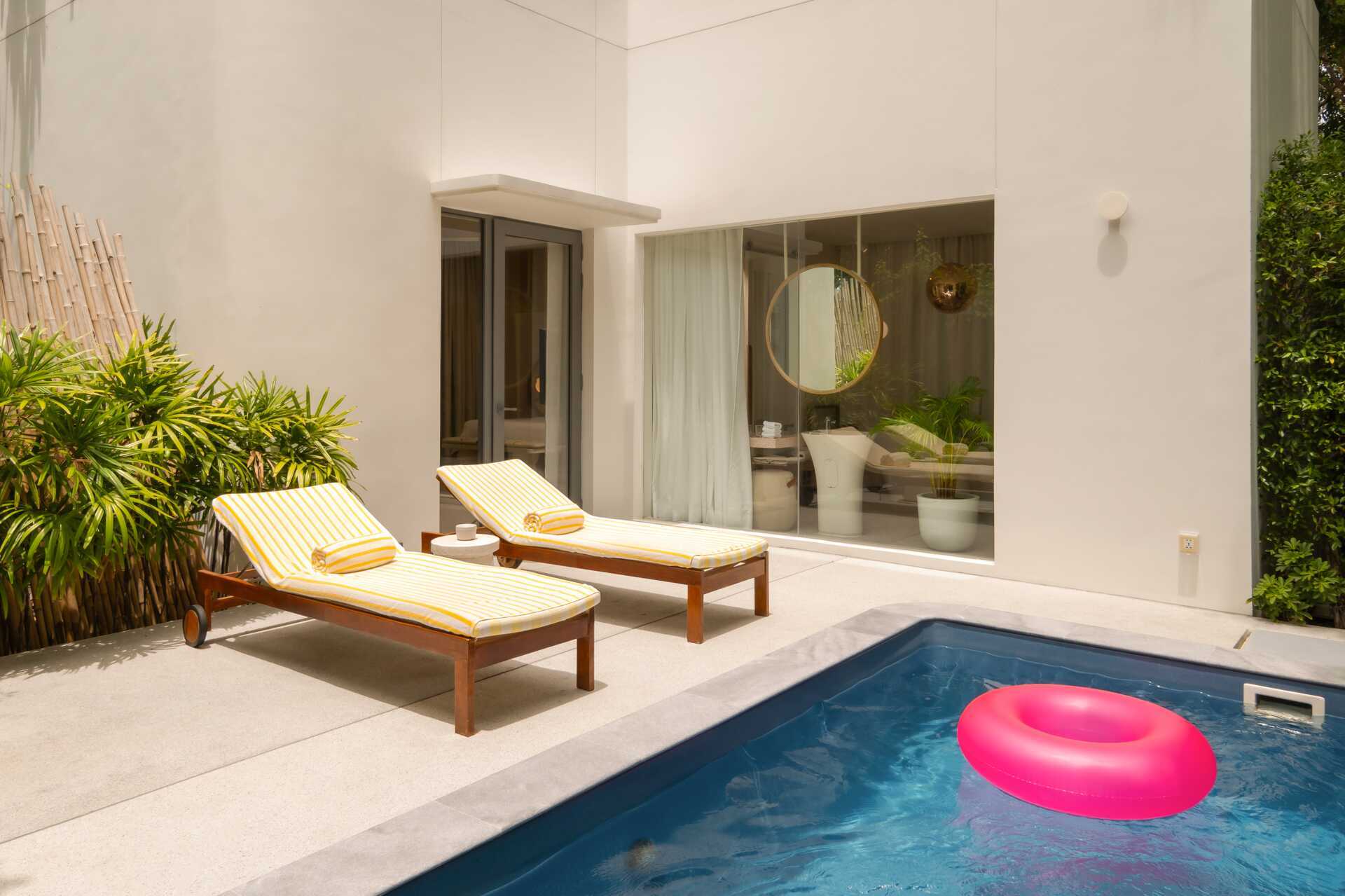 Bungalow med uteplass og privat basseng. Ved bassenget er det solsenger og bassenghåndklær. En dobbeltseng. Mulig med en ekstraseng i enkeltseng. Wifi, luftkondisjonering og safe inkludert. Kjøleskap. TV. Bluetooth høyttaler. Badekåper og tøfler. Hårføner. Baderom med dusj og wc. Rengjøring 7 ggr/uke.