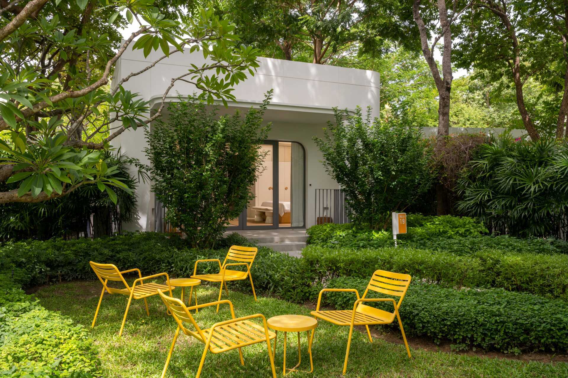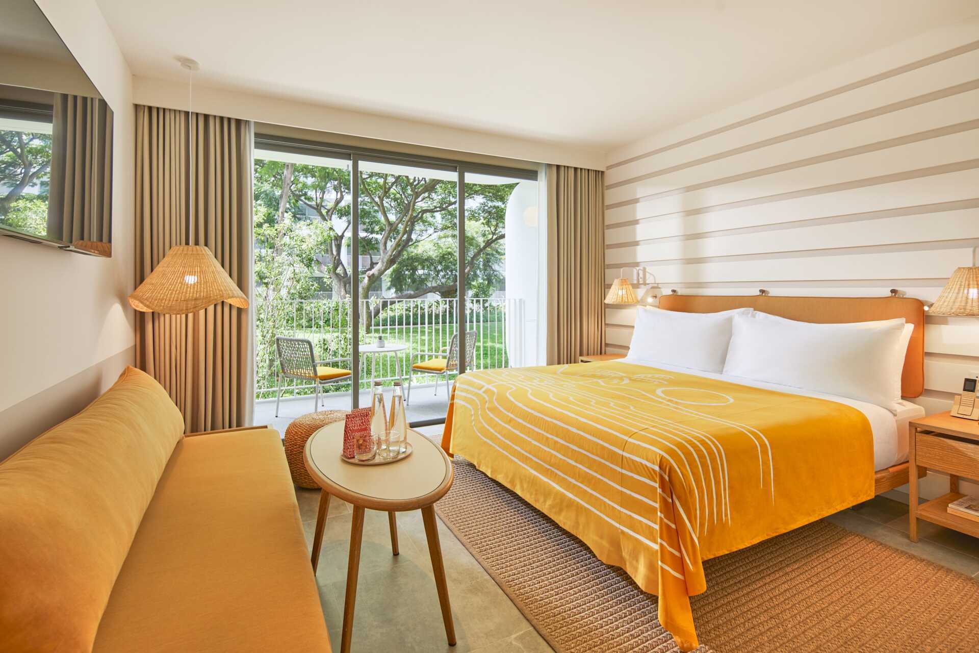 Dobbeltrom i bungalow, hage med balkong eller terrasse. En dobbeltseng. Mulig med ekstraseng i en dagseng/enkeltseng. Wifi, luftkondisjonering og safe inkludert. Kjøleskap. TV. Bluetooth høyttaler. Badekåper og tøfler. Hårføner. Bad med to vasker, badekar, separat dusj og separat wc. Rengjøring 7 ggr/uke.