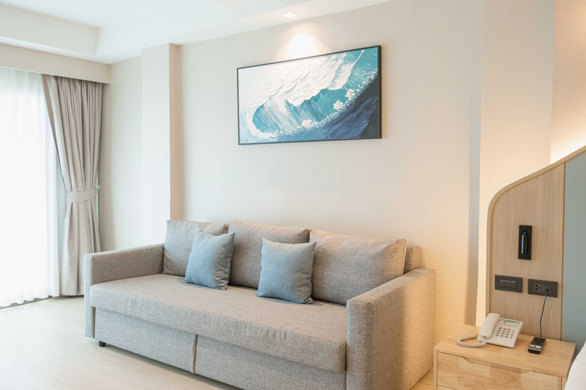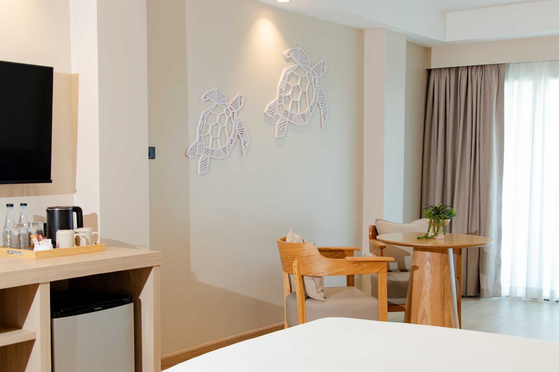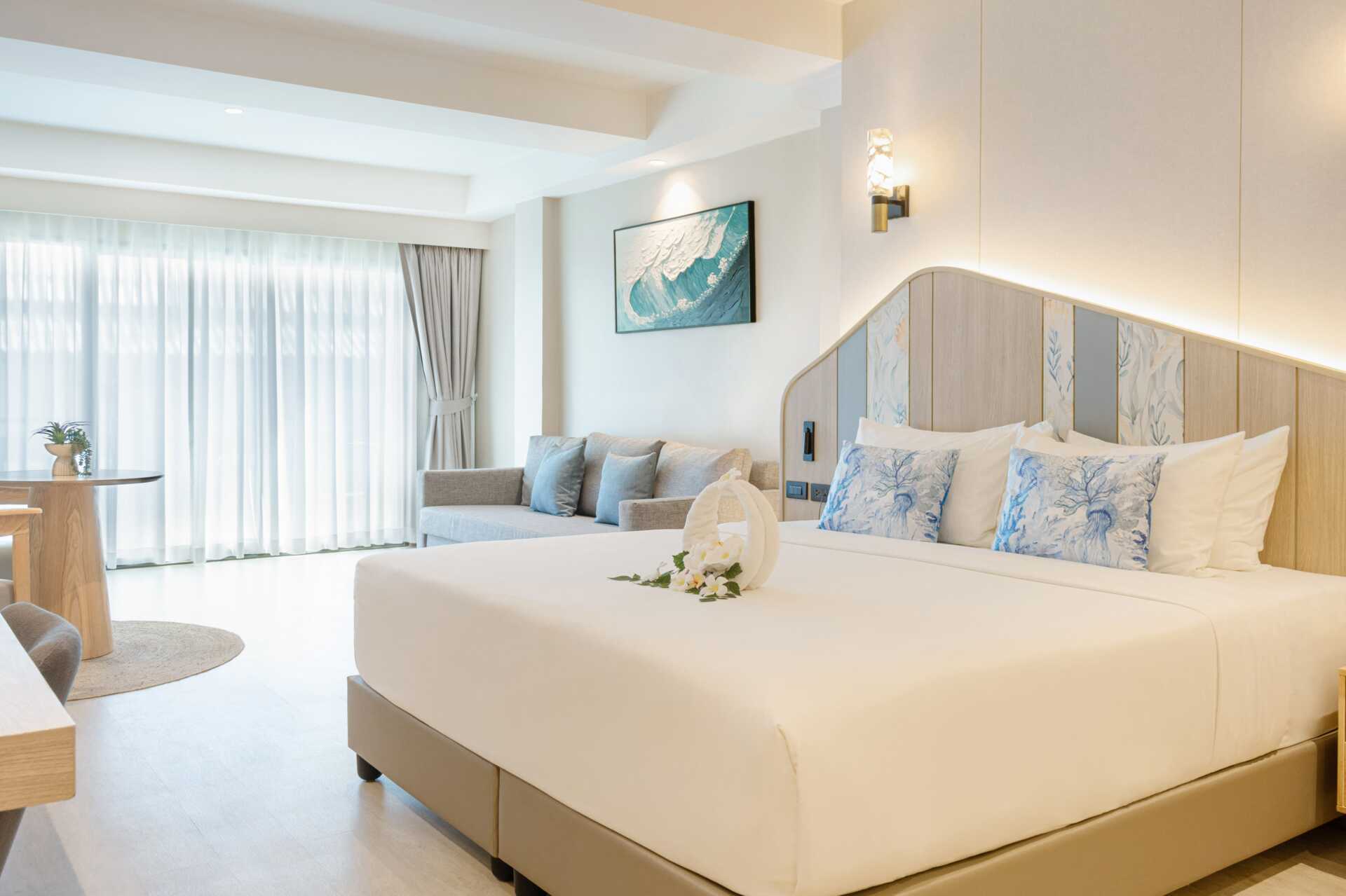 Deluxerom med balkong. En dobbeltseng eller to enkeltsenger. Mulig med en ekstraseng i sovesofa. Wifi, luftkondisjonering og safe inkludert. Kjøleskap. Vannkoker samt kaffe og te. TV. Hårføner. Badekåper og tøfler. Bad med dusj og wc. Rengjøring 7 ggr/uke. Barn under 2 år regnes inn i maksantallet i rommet.