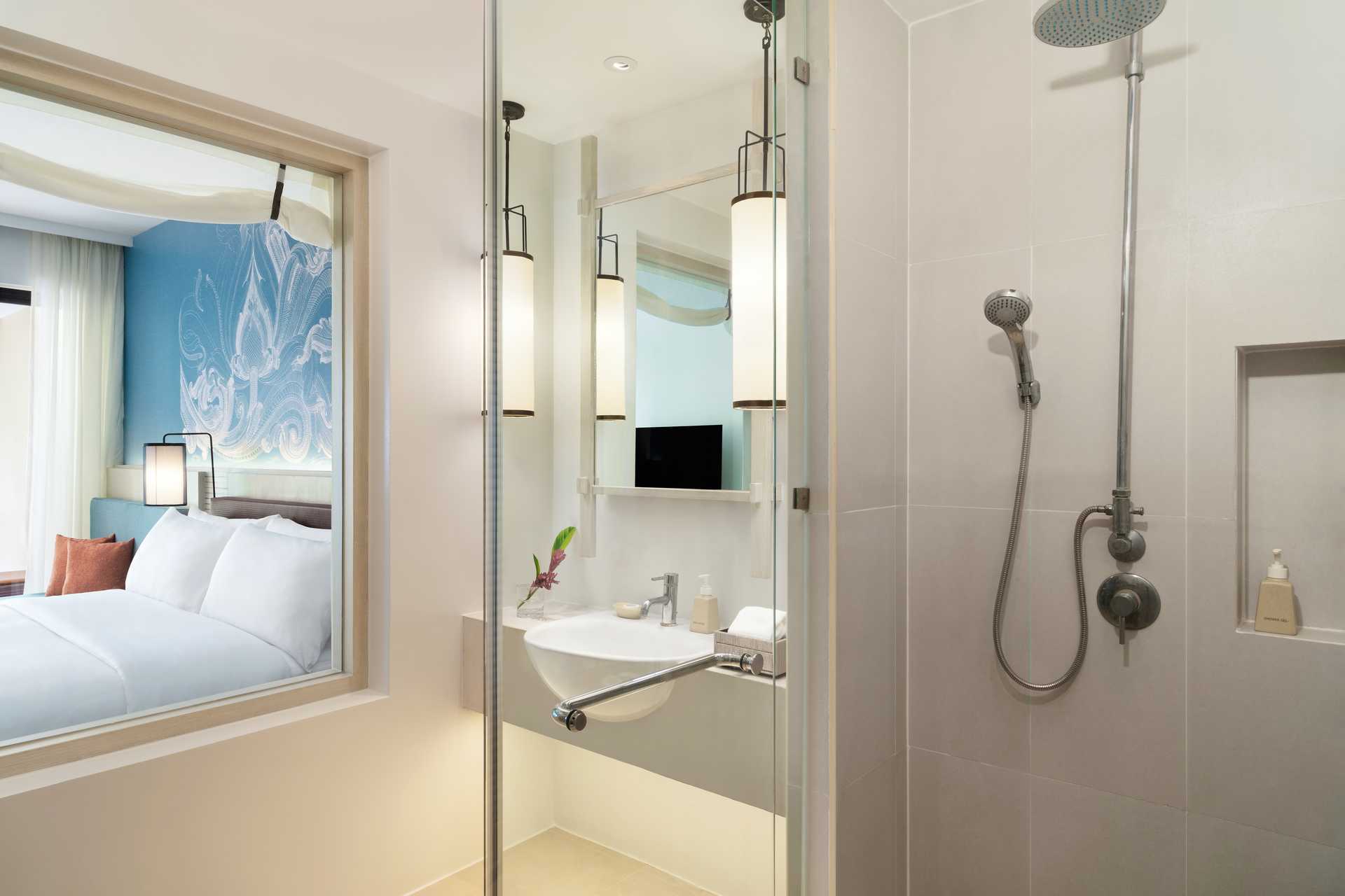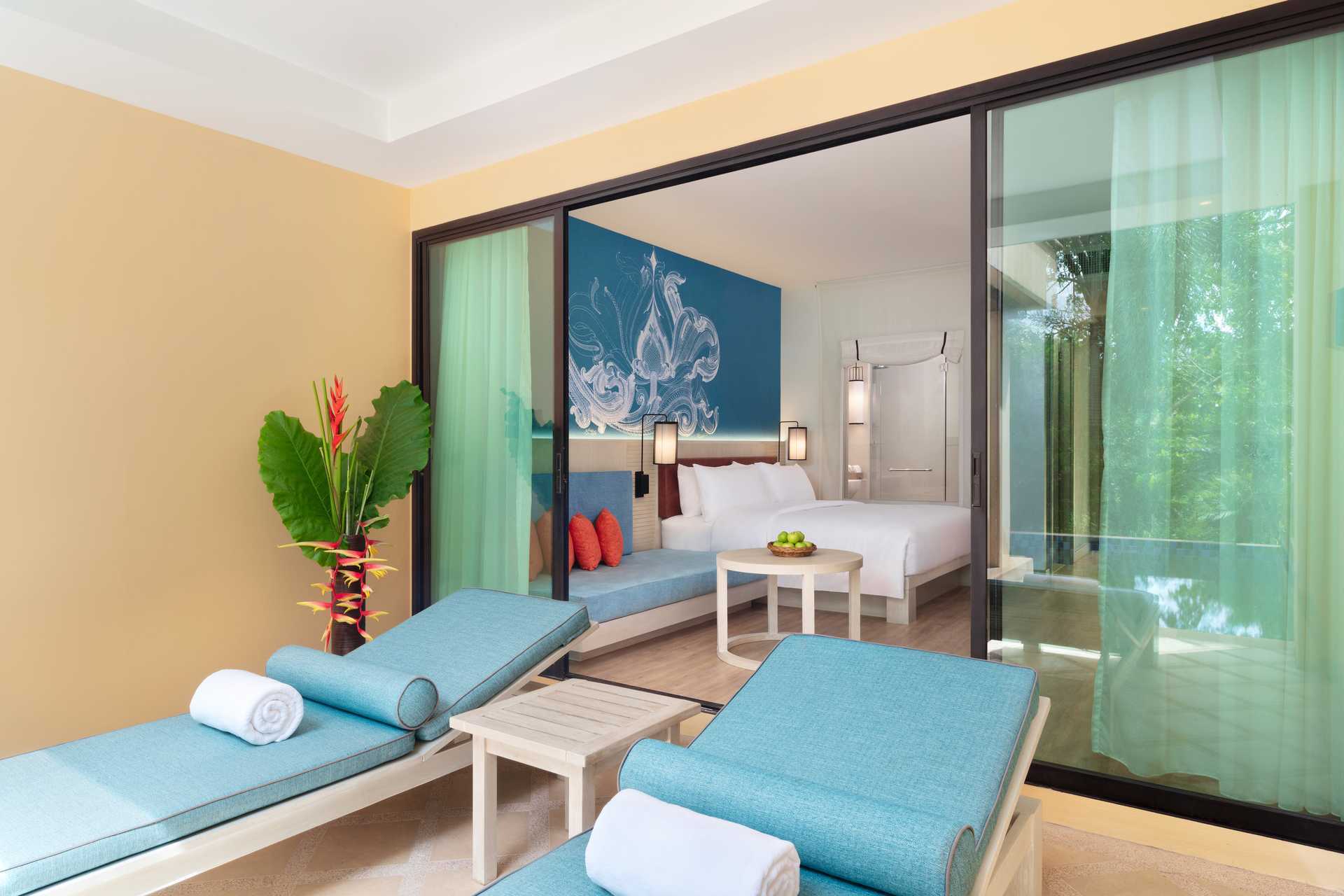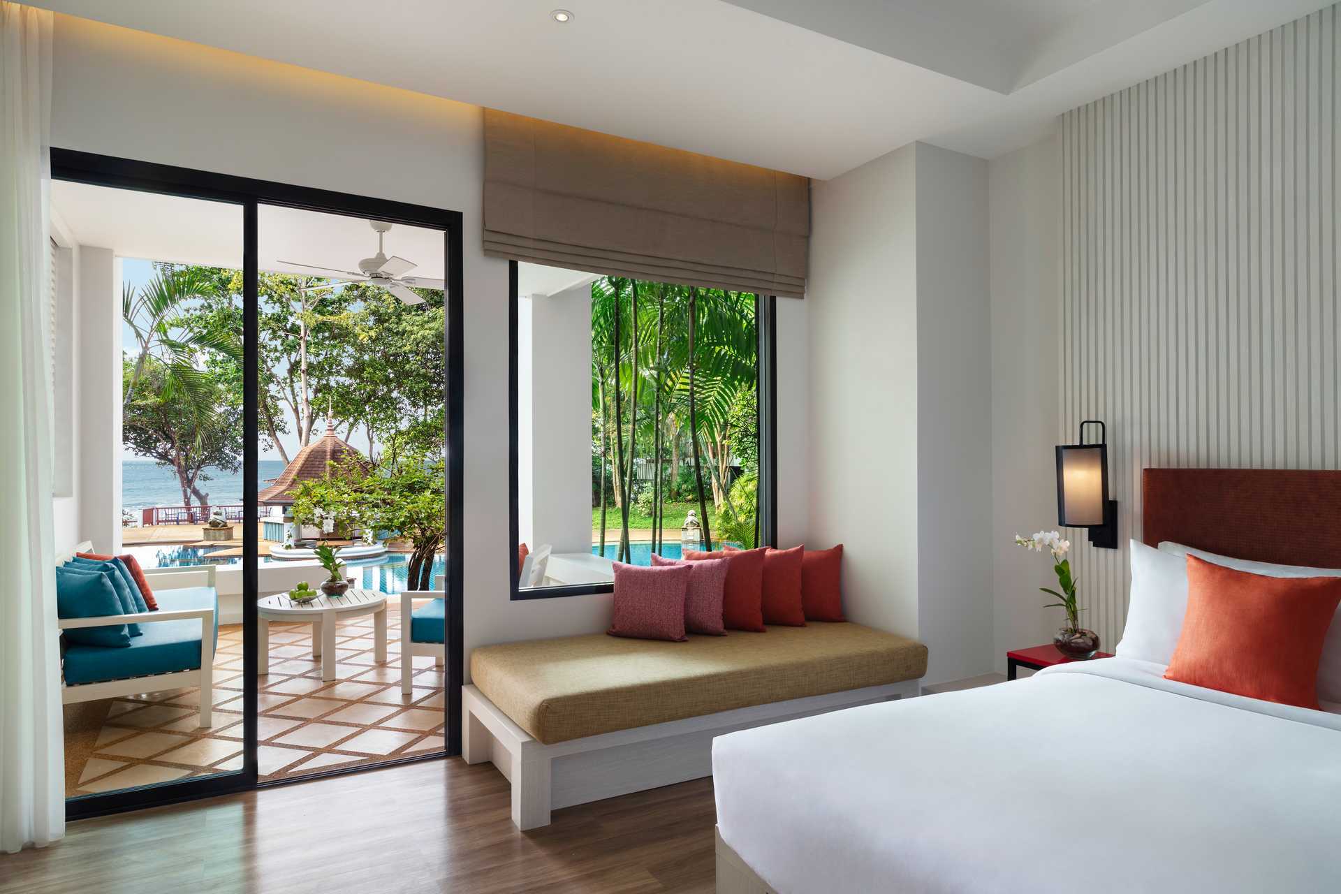 Dobbeltrom med utgang til bassenget På markterrasse er det en solseng, bord og en sofa. Rett nedenfor terrassen er det en grunnere del før det dypere fellesbassenget tar over. En dobbeltseng. Mulig med en ekstraseng i sovesofa. Fjerde person sover i ordinære senger. Wifi, luftkondisjonering og safe inkludert. Minibar. Vannkoker samt kaffe og te. TV. Badekåper og tøfler Hårføner. Baderom med dusj og wc. Rengjøring 7 ggr/uke.