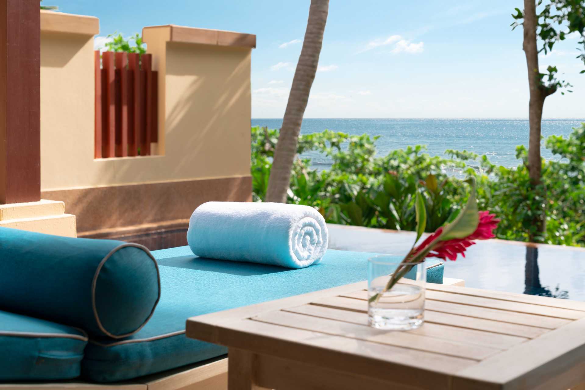 Toroms villaer med eget basseng på en stor markterrasse (ca. 60 kvm) med havutsikt. På terrassen er det et bord og en sofa samt to solsenger. Villaene har et soverom og en stue. En dobbeltseng. Mulig med en ekstraseng i sovesofa. Fjerde person må være et barn og sove i ordinære senger. Wifi, luftkondisjonering og safe inkludert. Minibar. Vannkoker samt kaffe og te. TV. Badekåper og tøfler Hårføner. Baderom med dusj og wc. Det er også en utendørs dusj. Rengjøring 7 ggr/uke.