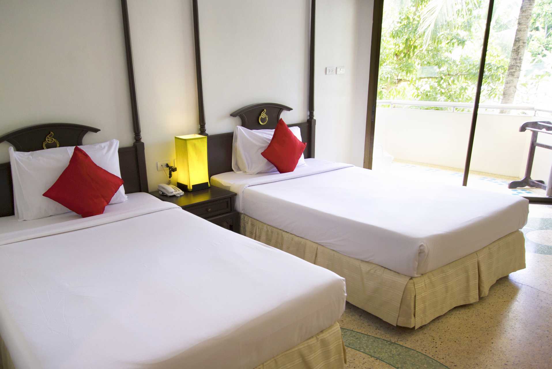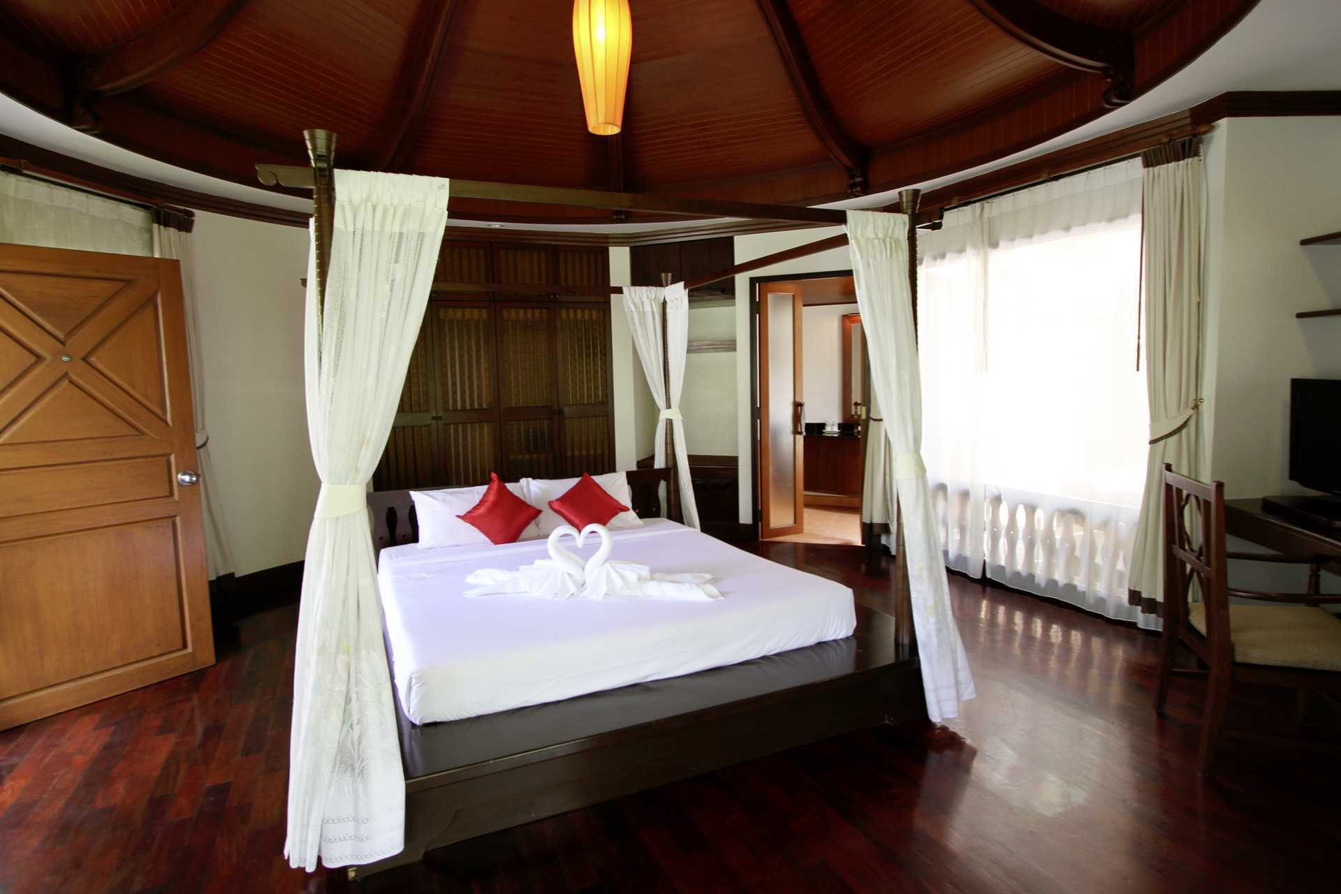 Deluxerom i bungalower med balkong eller terrasse. En dobbeltseng og en enkeltseng. Mulig med ekstraseng i ordinære senger. Wifi, luftkondisjonering og safe inkludert. Minibar. Vannkoker samt kaffe og te. TV. Hårføner. Dusj og wc. Rengjøring 7 ggr/uke.