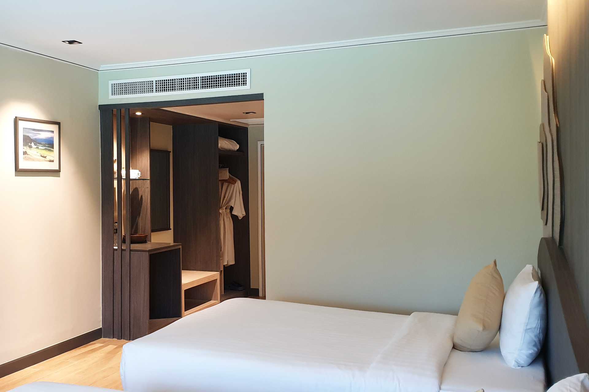 Superiorrom med balkong eller terrasse med bassengutsikt. En dobbeltseng eller to enkeltsenger. Wifi, luftkondisjonering og safe inkludert. Minibar. Vannkoker samt kaffe og te. TV. Badekåper og tøfler Hårføner. Badekar og wc. Rengjøring 7 ggr/uke.