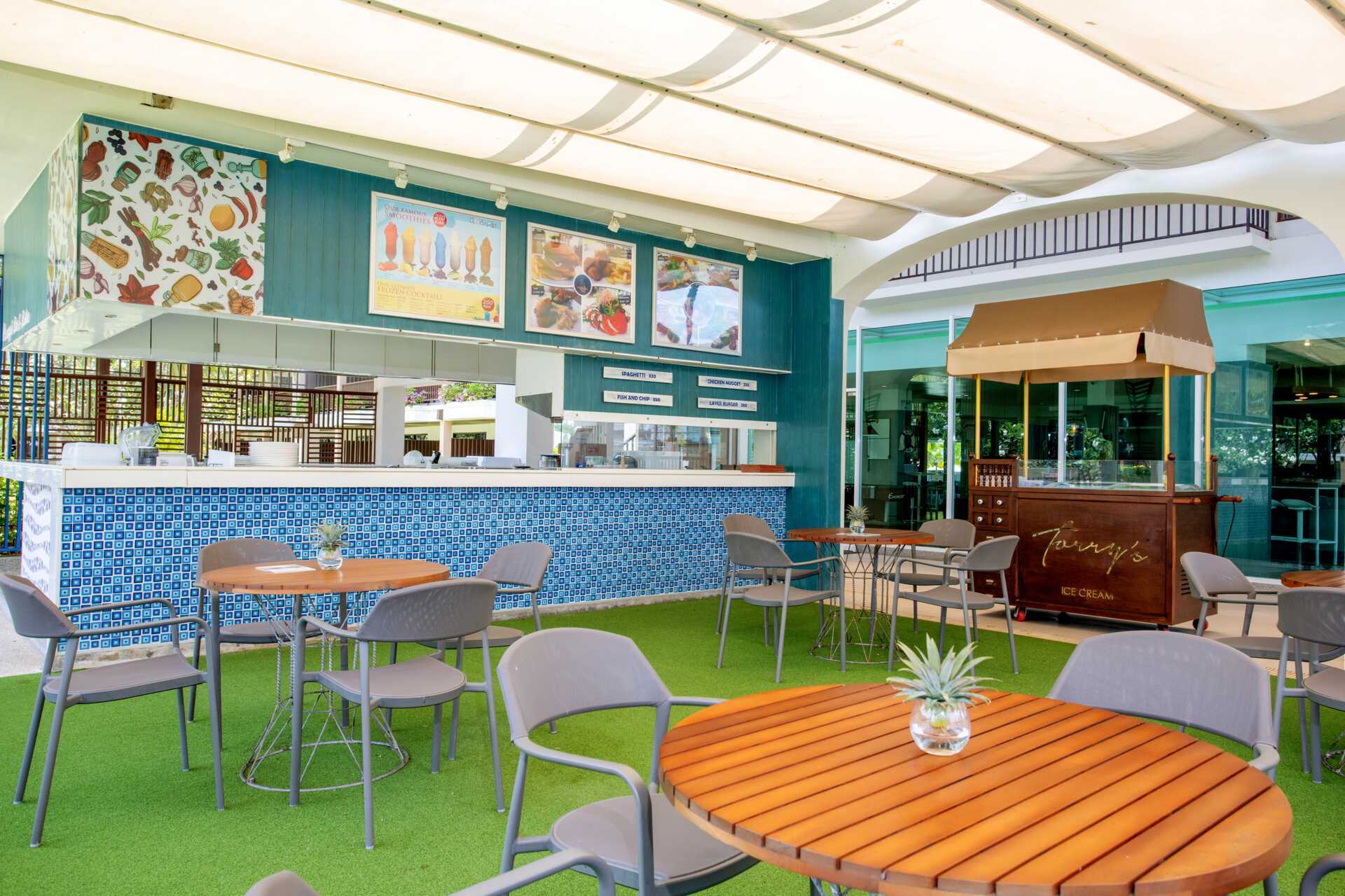 Det er seks restauranter inne på hotellområdet, fordelt på begge hotelldelene. Chanadda Royal Thai Cuisine serverer retter fra det populære thailandske kjøkkenet, mens Chom Talay serverer både vestlige og thailandske retter til frokost og middag. Fisherman's Wharf frister med fiskeretter og sjømat fra grillen på stranden. La Scala serverer italiensk mat, og The Cove Bistro kan du velge blant europeiske favoritter. Seacret Restaurant tilbyr internasjonale retter til frokost og lunsj. Tree House byr på grillfavoritter. Nudler finner du på Bamboo Bowl, og kjøttretter serveres på Prime & Flame. Pippin Restaurant serverer frokost og comfort food på dagtid. I mars 2026 åpner Captain Tully's Burger med burgere, wraps og sprøstekte matbiter. Flere barer, inkludert poolbar og en strandbar.
