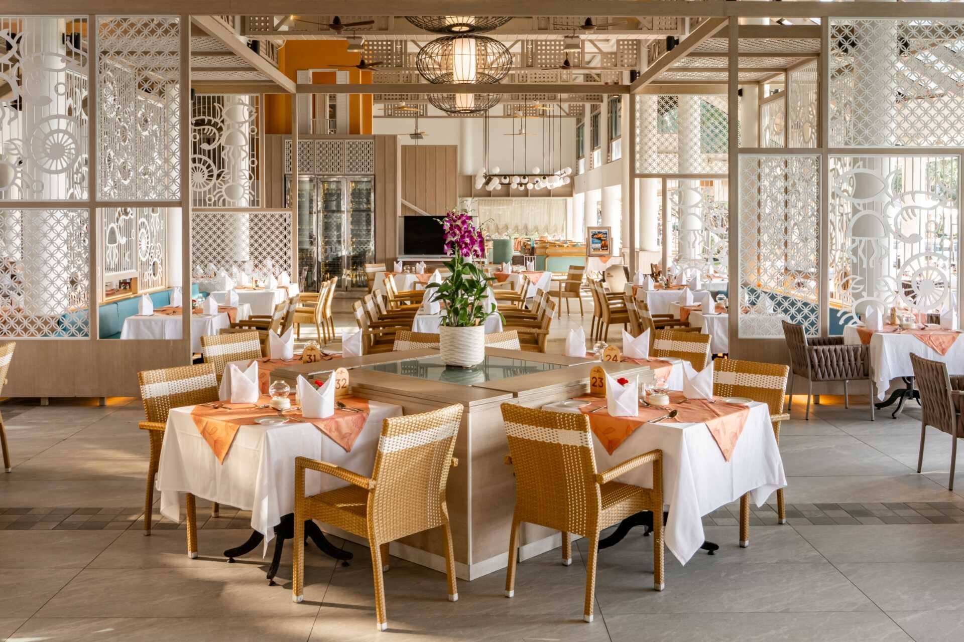 Når du bestiller halvpensjon eller helpensjon vil du motta kuponger ved innsjekking som er gyldige i hotellets à la carte- og bufférestauranter. Du kan velge om du vil spise lunsj eller middag. Kupongen er personlig og er verdt 800 baht for voksne og 400 baht for barn opp til 11 år. Du betaler mellomlegget.