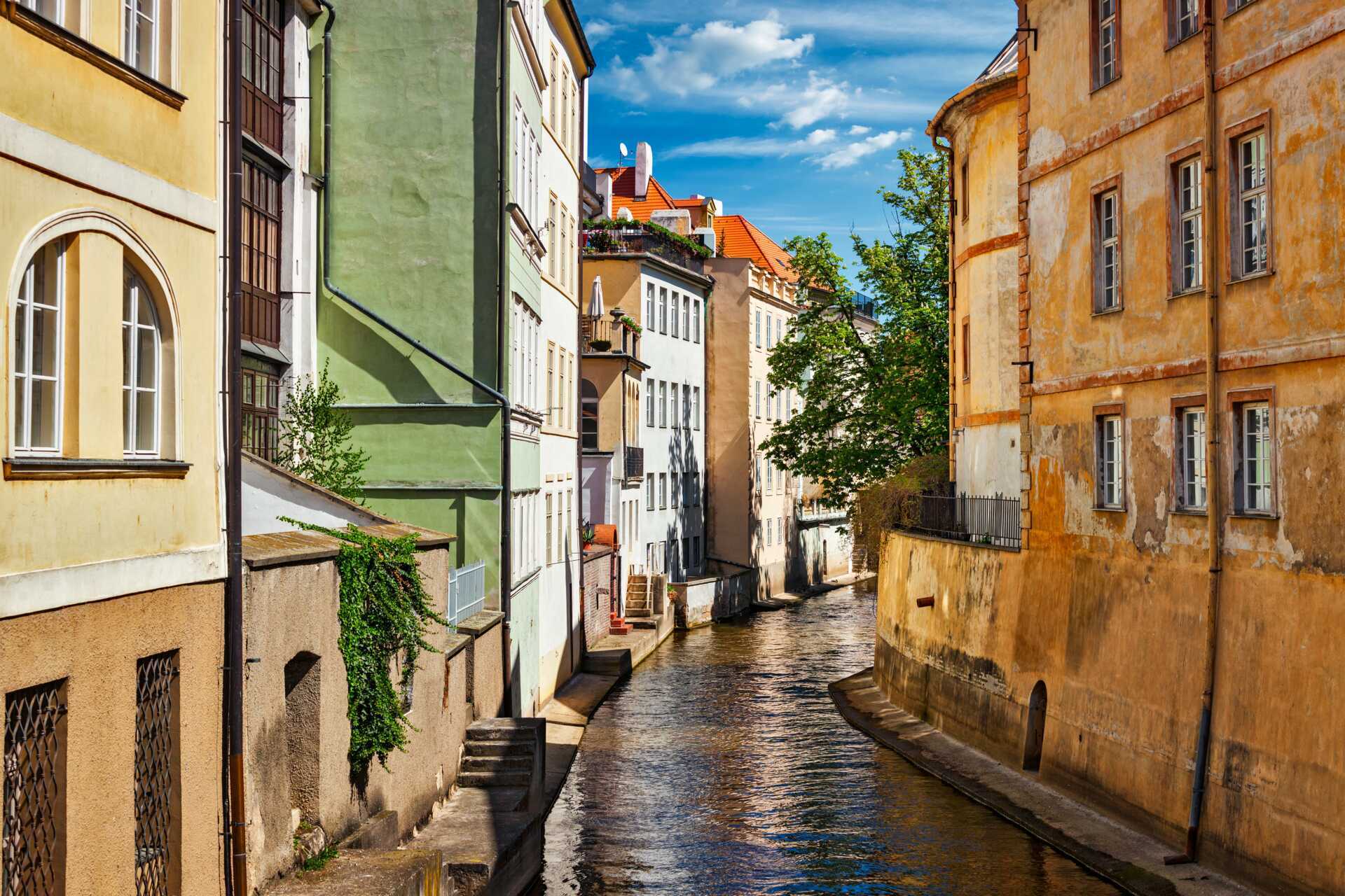 Mala Strana På vestsiden av elven Moldau ligger Malá Strana, Lille byen, som huser det tsjekkiske parlamentet og den berømte Karlsbroen. Herfra kan du gå til gamlebyen på omtrent 15 minutter. På vestsiden ligger også det rolige slottsdistriktet Hradcany, med Praha slott som sentrum.