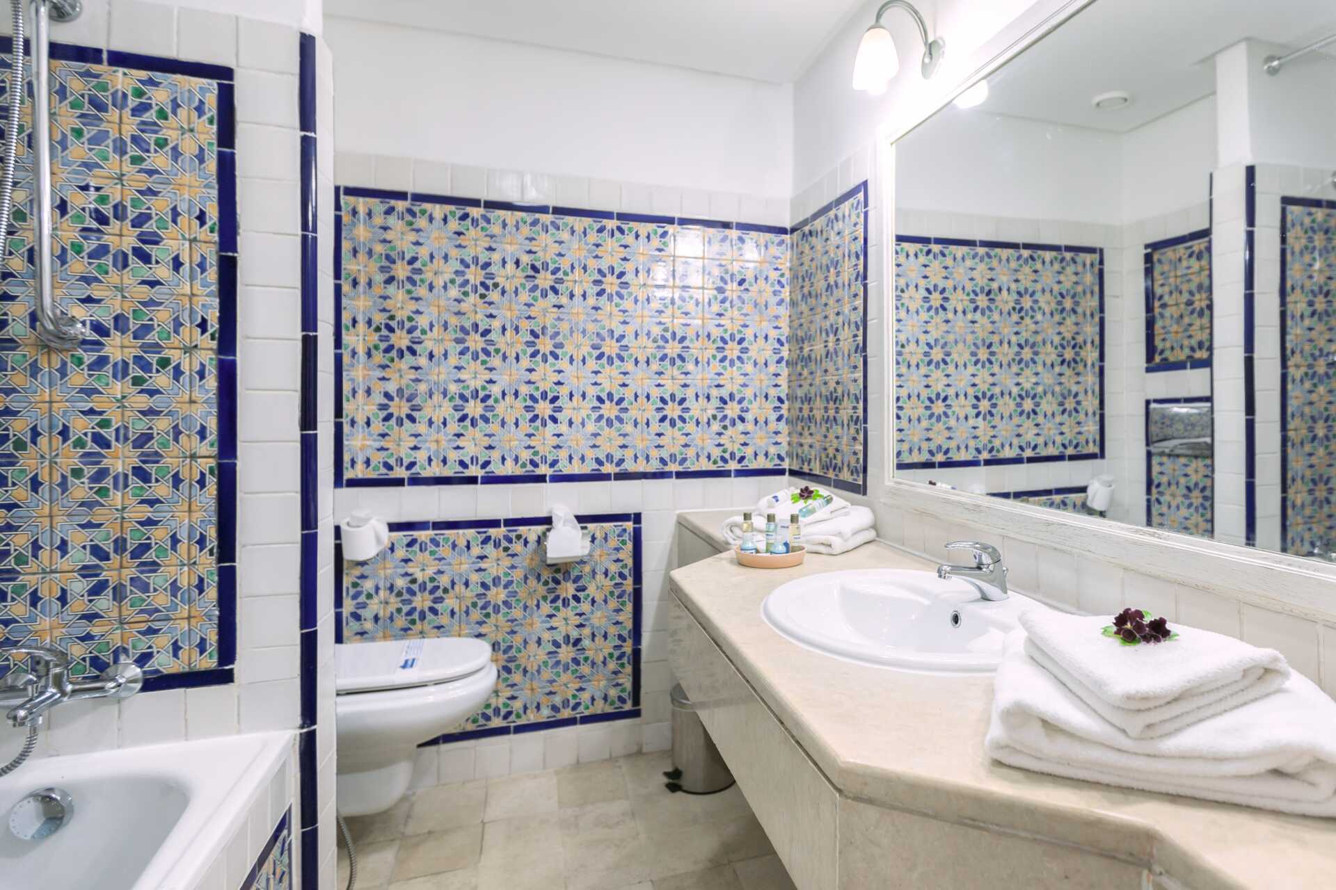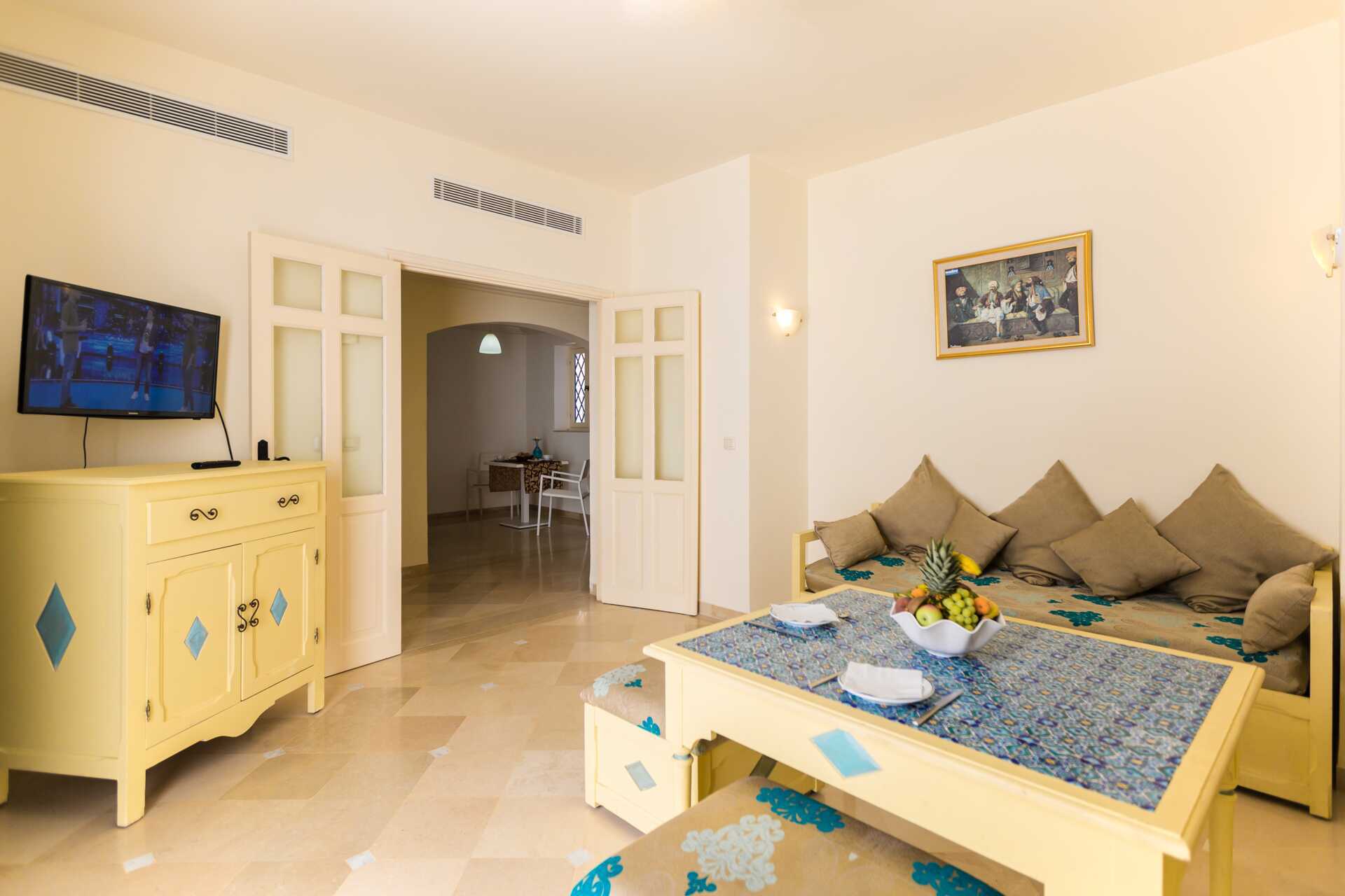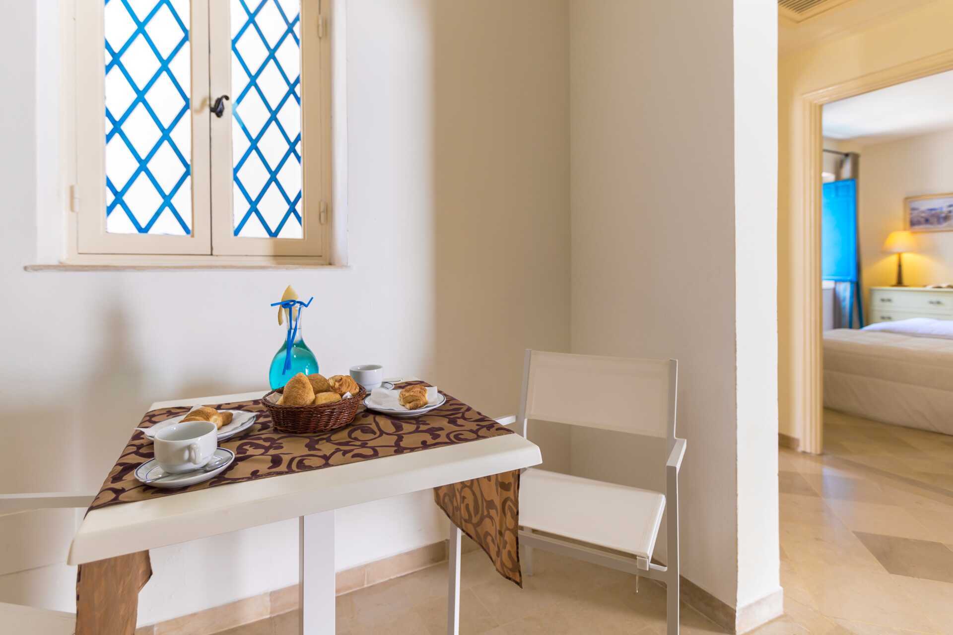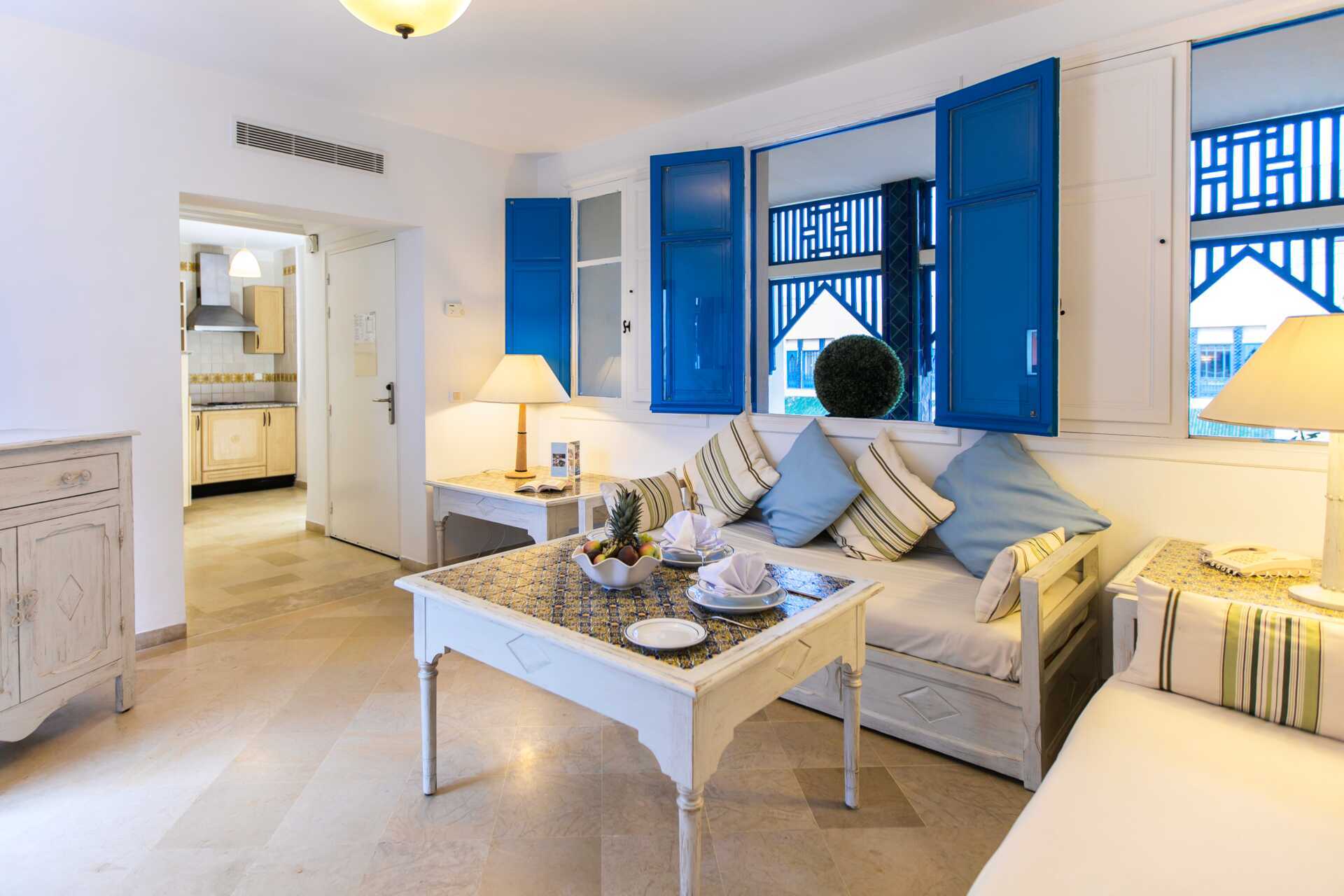 Suite med balkong eller terrasse. Suiten består av et soverom og en stue. Et soverom med dobbeltseng og et soverom med to enkeltsenger. Mulig med ekstraseng i sovesofa. Wifi, luftkondisjonering og safe er inkludert. Kjøleskap. TV. Hårføner. Baderom med badekar og wc. Rengjøring 7 ggr/uke.