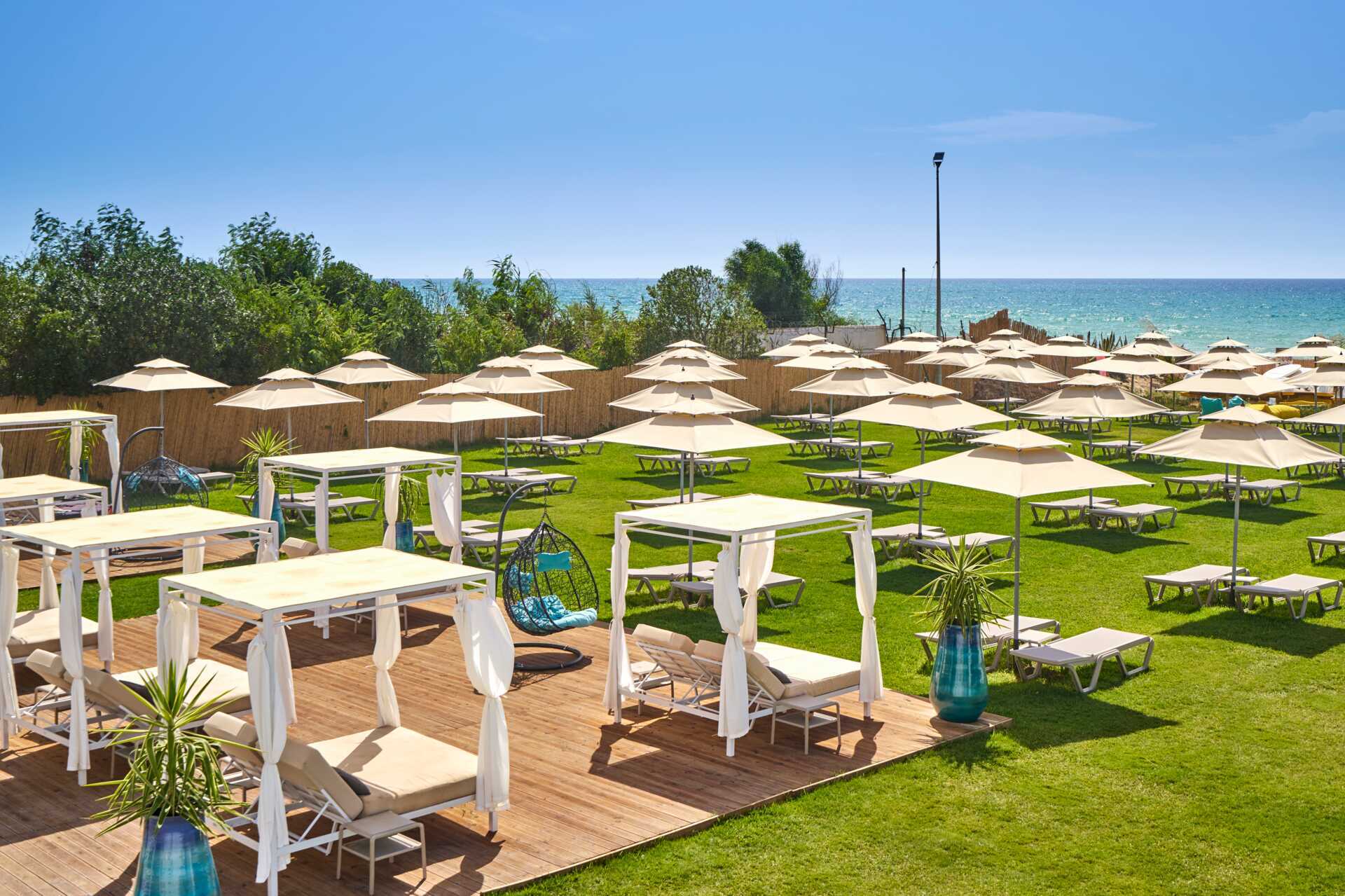 Hotellet har to store basseng, hvorav det ene har tre vannsklier. Solsenger og parasoller inkludert. Bassenghåndklær mot depositum. Den private delen av stranden inkluderer solsenger, parasoller og badehåndklær, og fra 1. juni til 15. september er motorisert vannsport også tilgjengelig mot avgift. Det er også et oppvarmet innendørsbasseng fra 1. november til 31. mars. Burkini kan kun brukes på stranden.