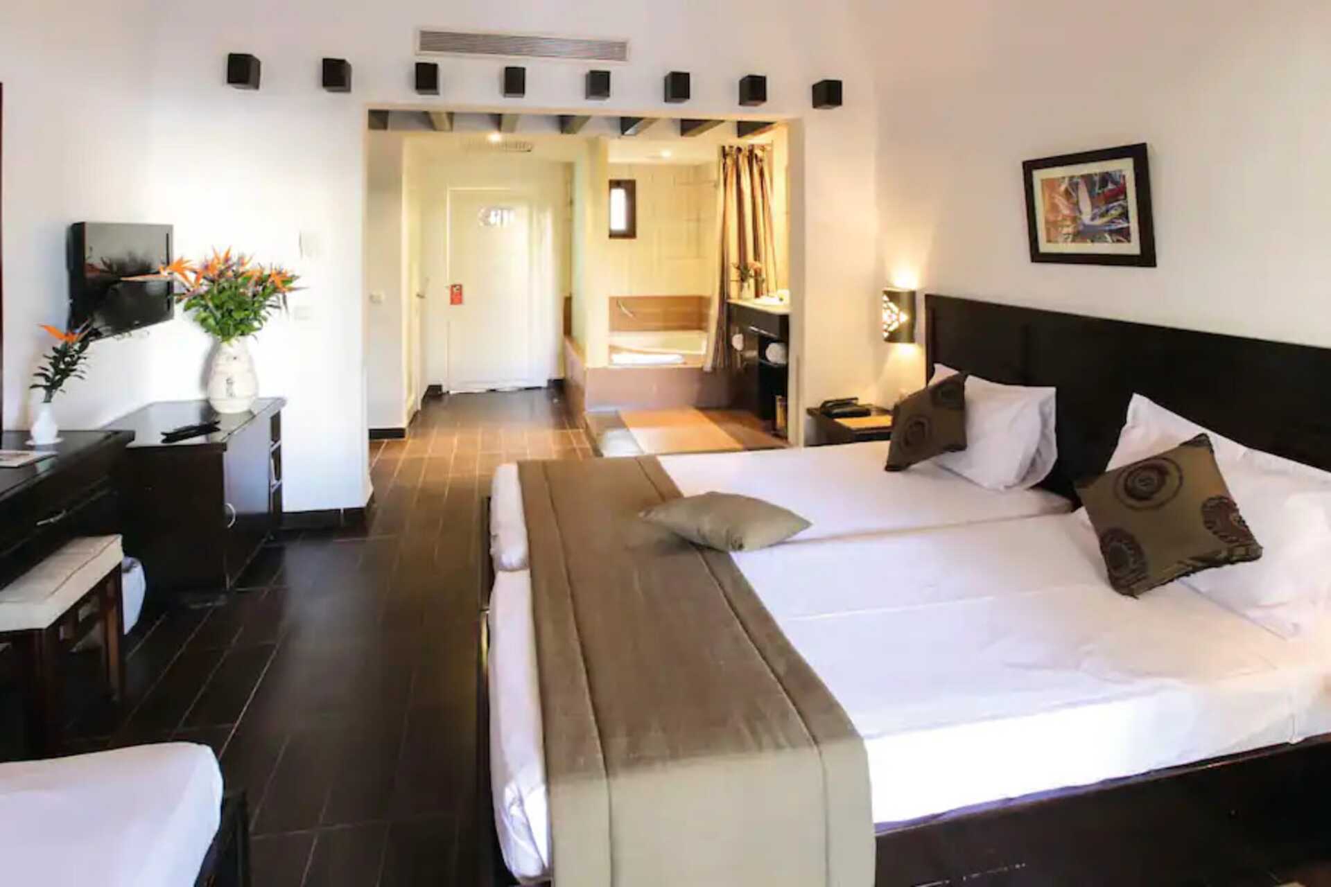 Dobbeltrom i bungalow med balkong eller terrasse. To enkeltsenger. Mulig med ekstraseng i enkeltseng. Wifi og luftkondisjonering er inkludert. Vær oppmerksom på at luftkondisjoneringen i rommene kun er på mellom 15. juni og 15. september. Safe mot avgift. Minibar mot avgift, en flaske vann er inkludert og etterfylles hver dag. TV. Vegg-til-vegg-teppe. Hårføner. Badekar eller dusj samt wc. Rengjøring 7 ggr/uke.