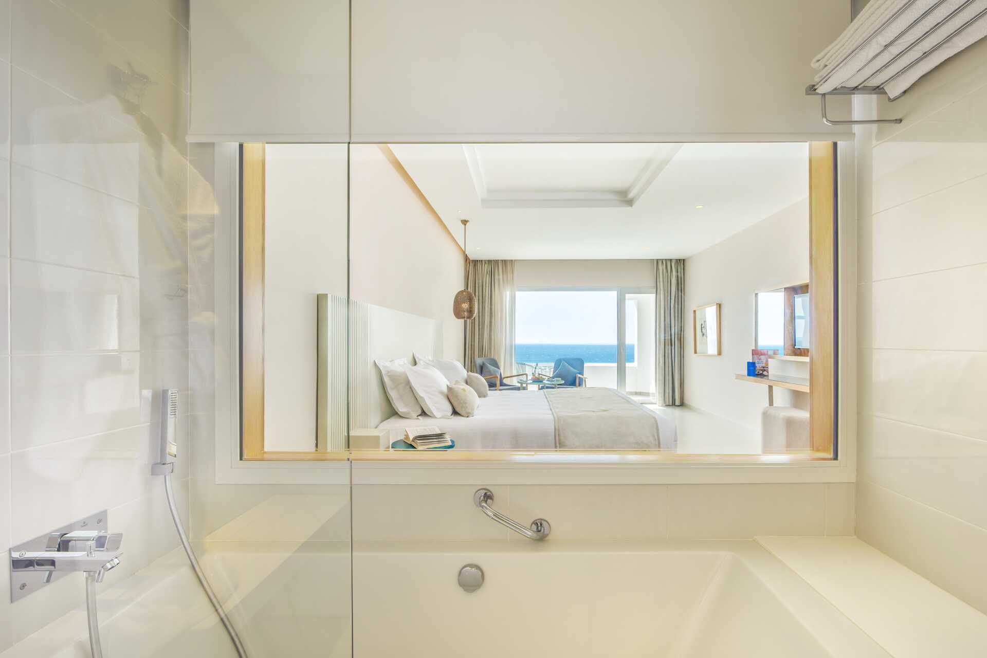 Dobbeltrom med balkong, noen med havutsikt. En dobbeltseng eller to enkeltsenger. Mulig med en ekstraseng i enkeltseng. Wifi, luftkondisjonering og safe inkludert. Minibar. Vannkoker. TV. Badekåper og tøfler. Hårføner. Badekar eller dusj samt wc. Rengjøring 7 ggr/uke.