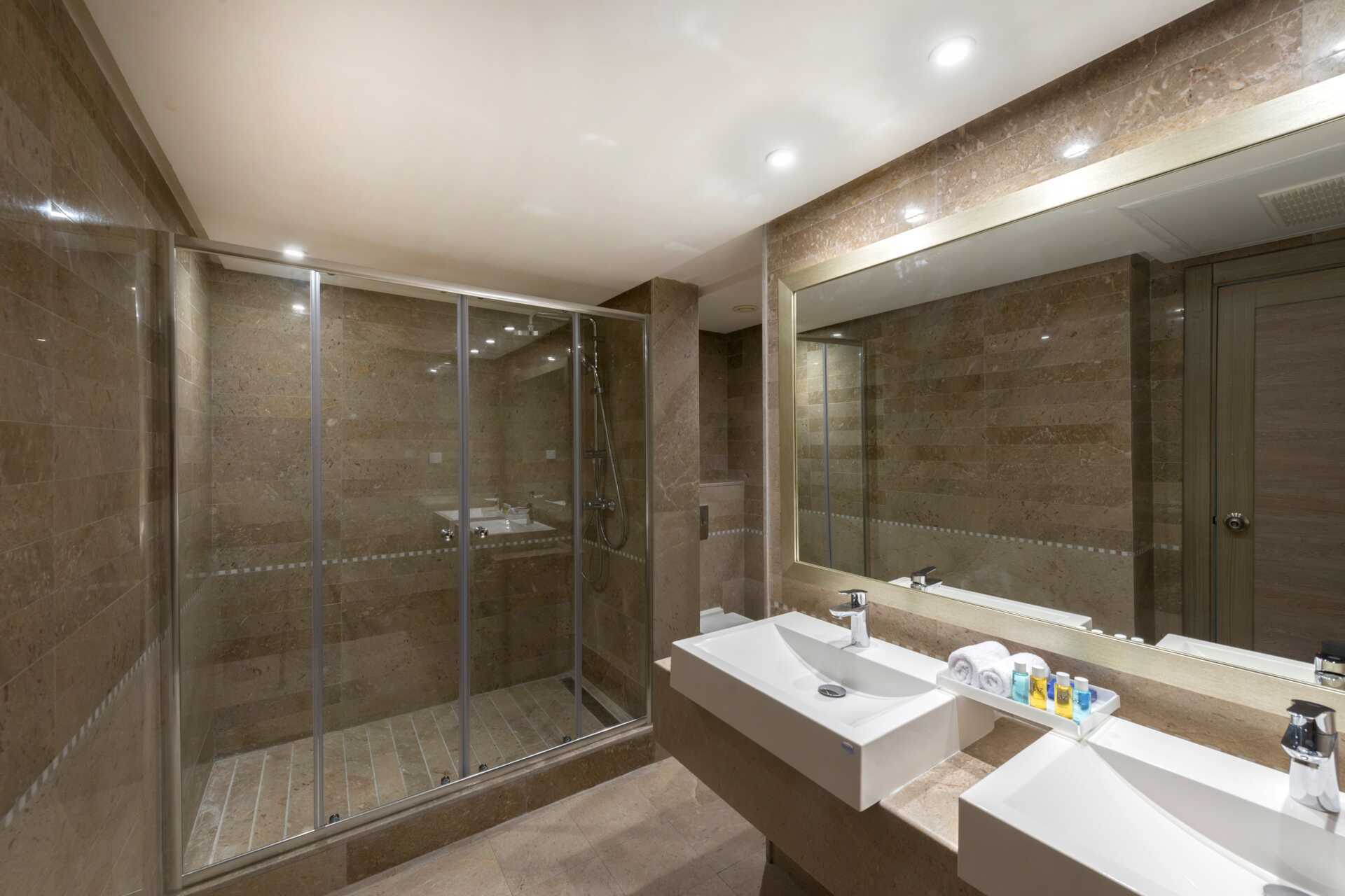 Dobbeltrom med balkong, noen med havutsikt. En dobbeltseng eller to enkeltsenger. Mulig med ekstraseng i feltseng. Wifi, luftkondisjonering og safe inkludert. Minibar mot avgift, en flaske vann er inkludert og etterfylles hver dag. Vannkoker samt kaffe og te. TV. Hårføner. Bad med badekar og dusj og wc. Rengjøring 7 ggr/uke.