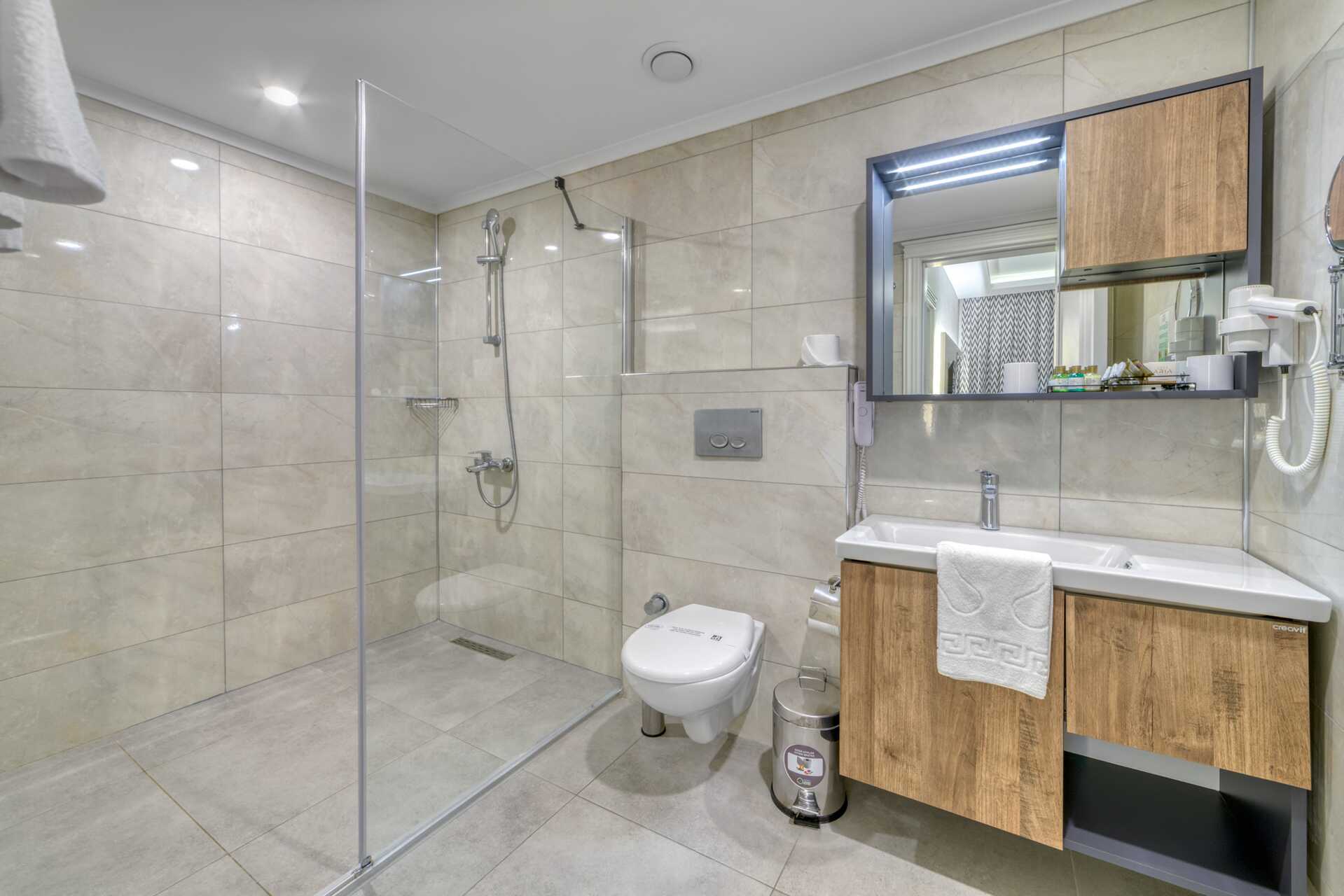 Dobbeltrom, alle med balkong, noen med begrenset havutsikt eller havutsikt. En dobbeltseng og en enkeltseng. Wifi, luftkondisjonering og safe inkludert. Minibaren fylles opp med brus og vann daglig. Vannkoker samt kaffe og te. TV. Tøfler. Hårføner. Bad med dusj og wc.