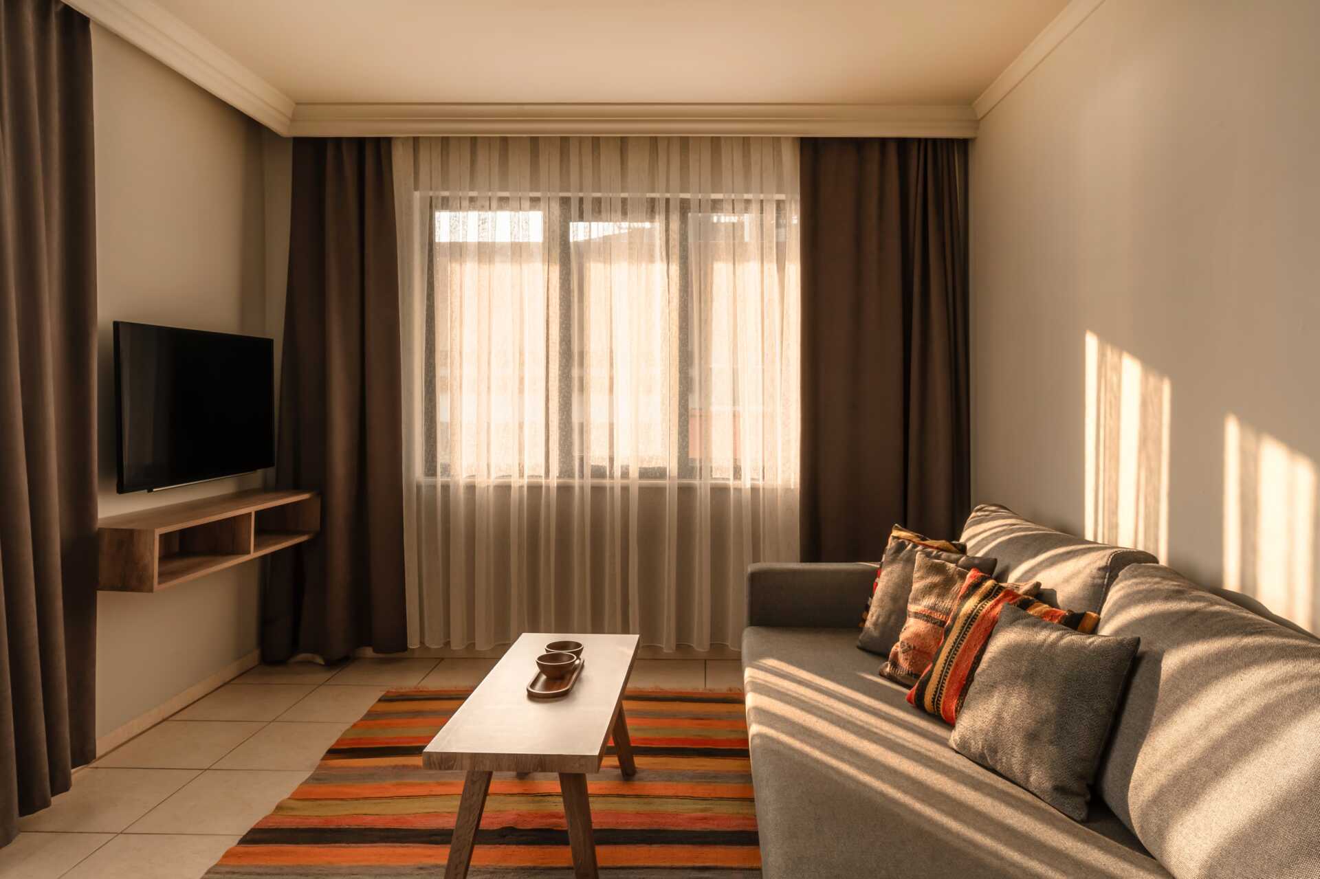 Dobbeltrom med balkong eller terrasse. To enkeltsenger. Wifi, luftkondisjonering og safe inkludert. Kjøleskap. Vannkoker. TV. Hårføner. Dusj og wc. Rengjøring 7 ggr/uke.