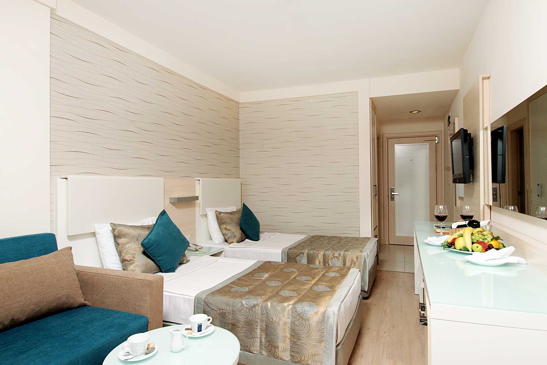 Dobbeltrom med balkong, noen med begrenset havutsikt. En dobbeltseng eller to enkeltsenger. Mulig med ekstraseng i sovesofa. Wifi og luftkondisjonering er inkludert. Safe mot avgift. Minibar. Vannkoker samt kaffe og te. TV. Strykejern og strykebrett. Tøfler. Hårføner. Dusj og wc. Rengjøring 7 ggr/uke.