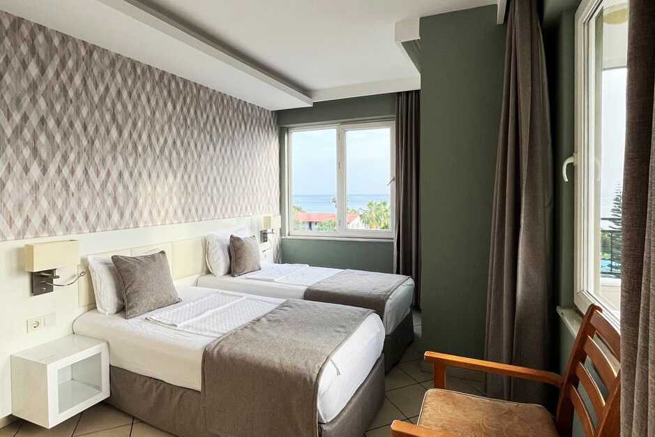 Treromsleilighet med balkong. To soverom og kombinert stue med minikjøkken. Et soverom med en dobbeltseng og et soverom med to enkeltsenger. Minikjøkken med kokeplater, kjøleskap, mikrobølgeovn, vannkoker og enkelt kjøkkenutstyr. Wifi inkludert. Luftkondisjonering kun i ett av soverommene, mot avgift. TV. Hårføner. Dusj og wc. Rengjøring 7 ggr/uke.