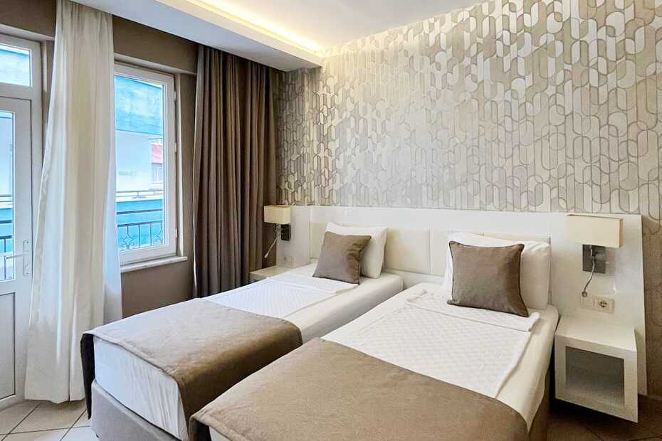 Toromsleiligheter med balkong. Et soverom med to enkeltsenger. Stuedel med mulighet for ekstraseng i sovesofa samt minikjøkken med kokeplater, kjøleskap, mikrobølgeovn, vannkoker samt enkelt kjøkkenutstyr. Wifi inkludert. Luftkondisjonering (bare i soverommet) mot avgift. TV. Dusj og wc, hårføner. Rengjøring 7 ggr/uke.