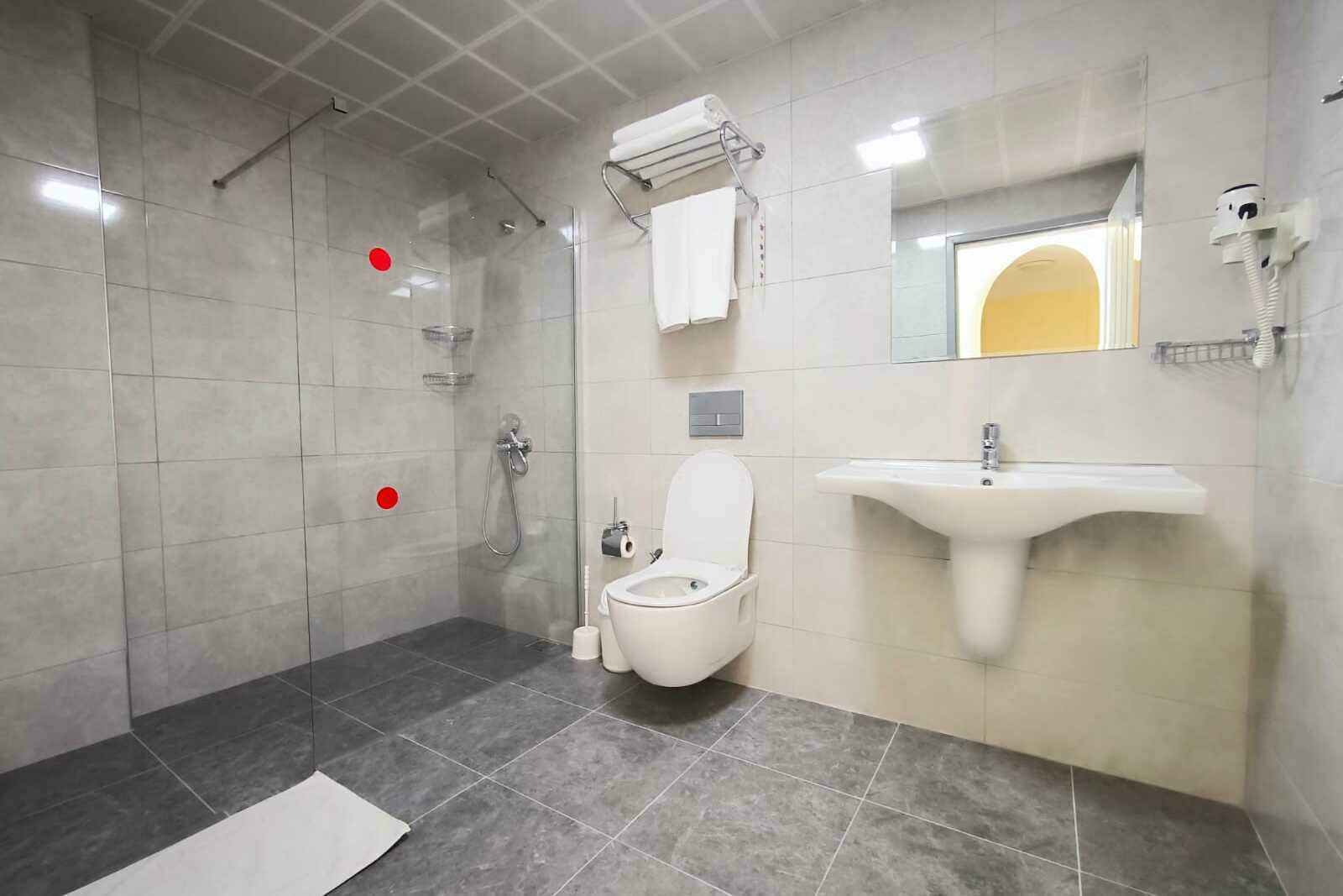 Større toromsleilighet med to balkonger. Et soverom og stue med minikjøkken. To enkeltsenger. Mulig med ekstrasenger i to sovesofaer. Minikjøkken med kjøleskap, kokeplater, enkelt kjøkkenutstyr, vannkoker og kaffetrakter. Wifi inkludert. Luftkondisjonering og safe mot avgift. I noen større toromsleiligheter er klimaanlegg kun tilgjengelig på soverommet. TV. Hårføner. Dusj og wc. Rengjøring 6 ggr/uke.
