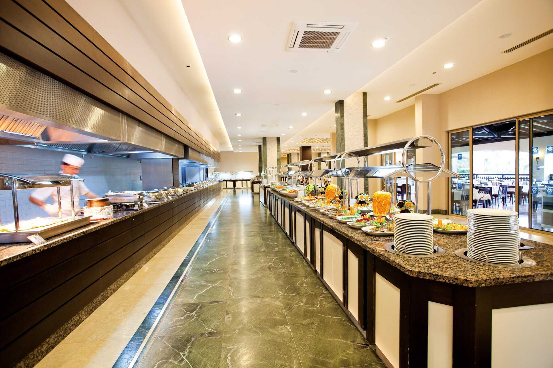 På hotellet er det en bufférestaurant samt tre à la carte restauranter som serverer fisk, tyrkiske retter og internasjonale retter. Aldersgrense 9 år i à la carte restaurantene International Western and Eastern Cuisine Restaurant. À la carte restaurantene er en uterestaurant som holder åpent avhengig av været. Bordreservasjon er nødvendig i à la carte restaurantene. Har du lyst på dessert, kan du besøke hotellets konditori.