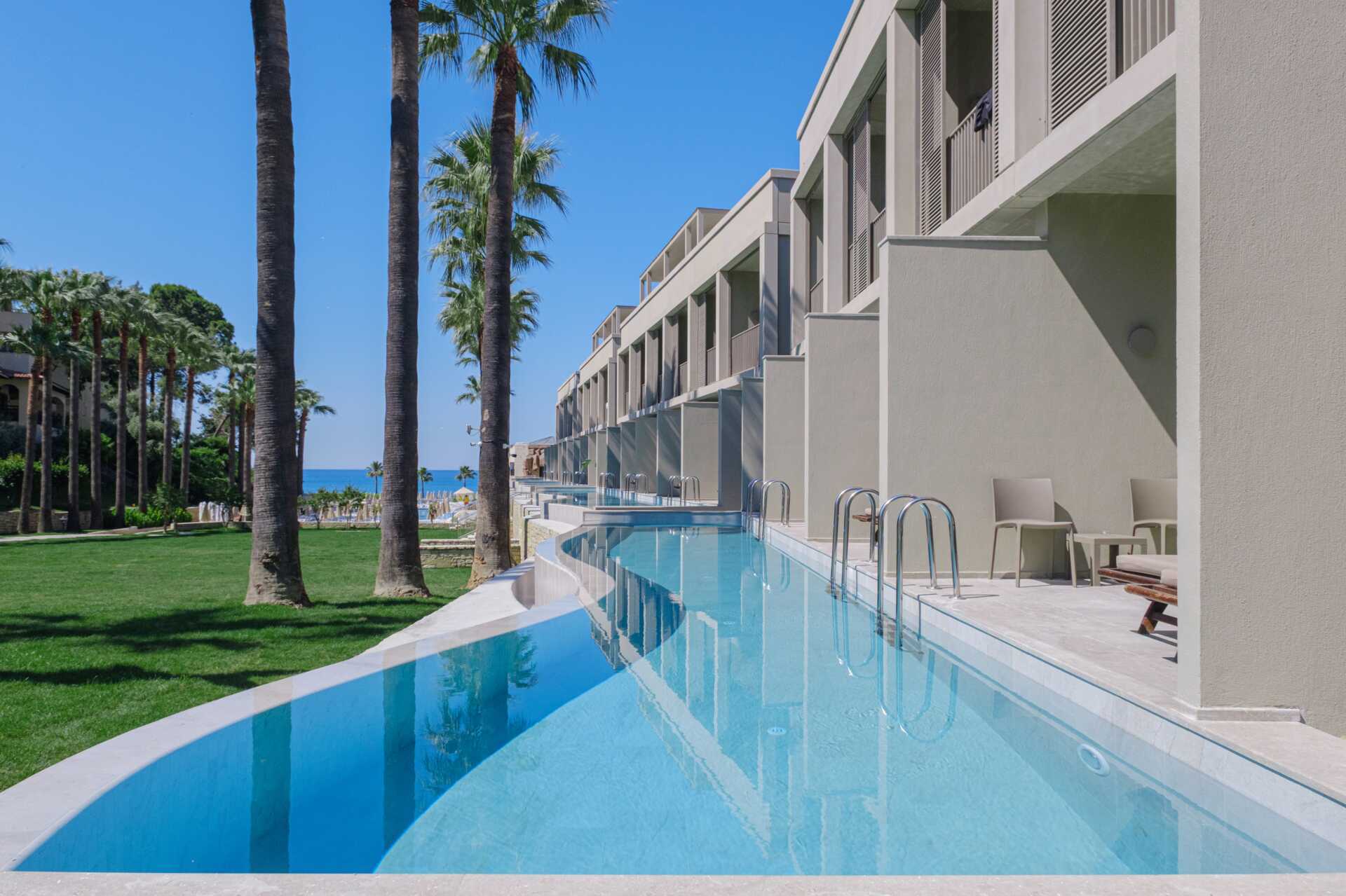 Superiorrom med direkte utgang til delt basseng fra uteplassen. En dobbeltseng eller to enkeltsenger. Mulig med ekstraseng i sovesofa. Wifi, luftkondisjonering og safe inkludert. Minibar. Vannkoker samt kaffe og te. TV. Hårføner. Dusj og wc. Rengjøring 7 ggr/uke. Aldersgrensen for å bo i denne romkategorien er 13 år.