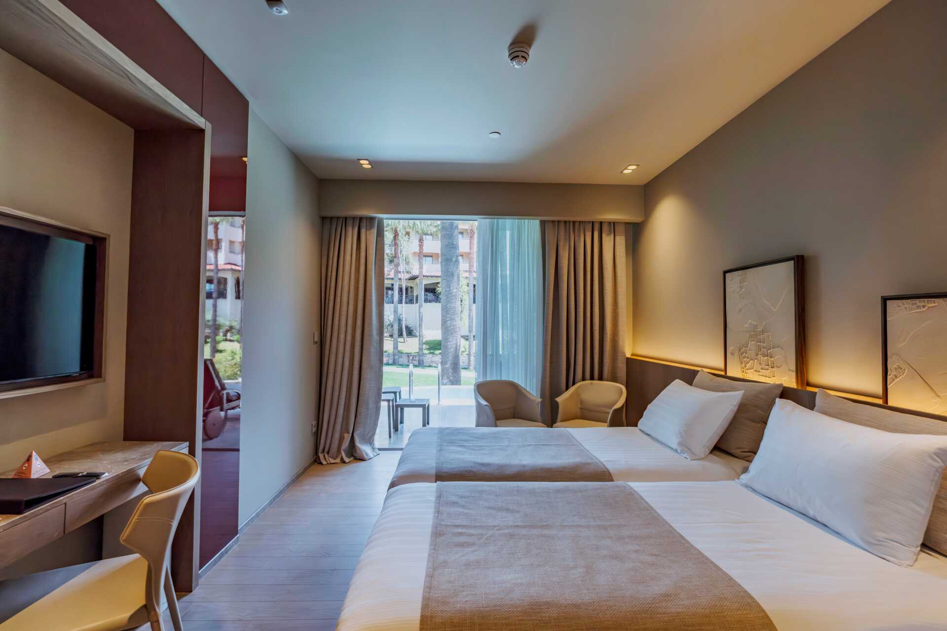 Superiorrom med balkong, noen med begrenset havutsikt. En dobbeltseng eller to enkeltsenger. Mulig med ekstrasenger i sovesofa. Wifi, luftkondisjonering og safe inkludert. Minibar. Vannkoker samt kaffe og te. TV. Hårføner. Dusj og wc. Rengjøring 7 ggr/uke. Barn under 2 år regnes inn i maksantallet i rommet.