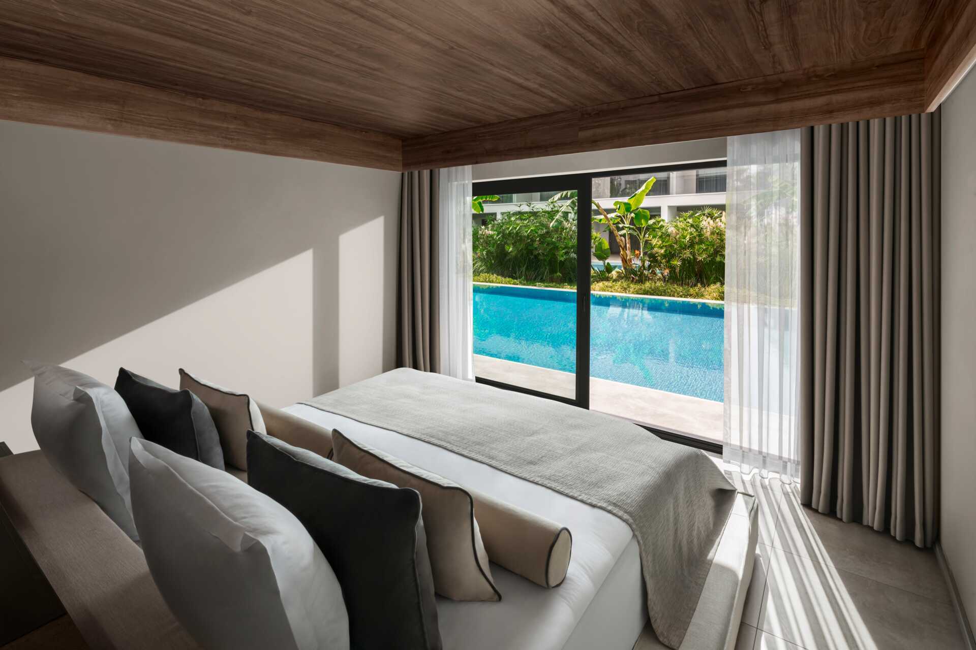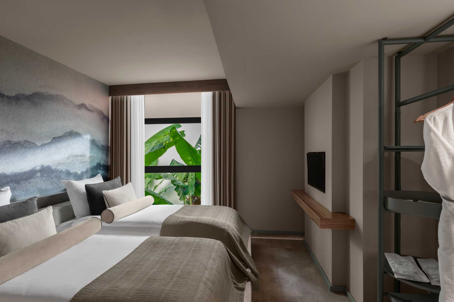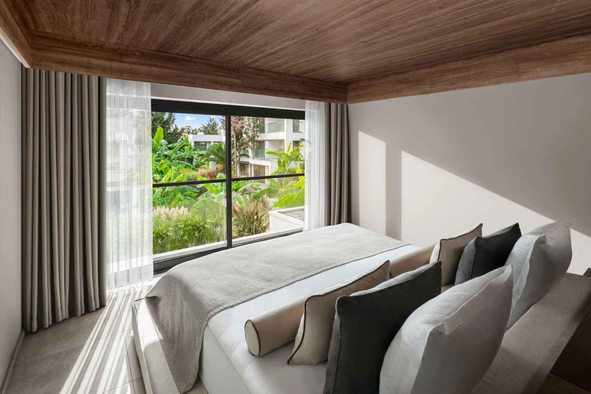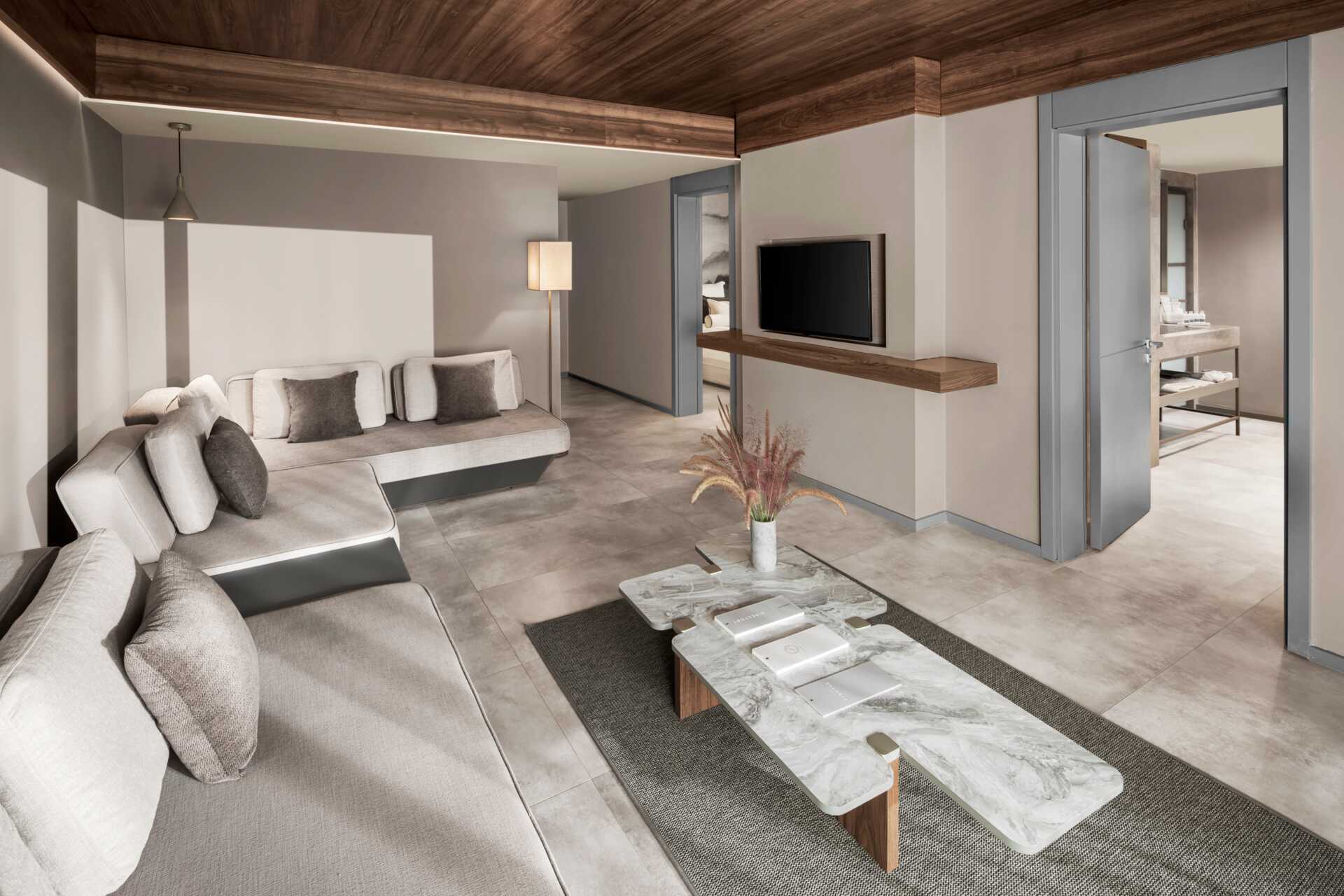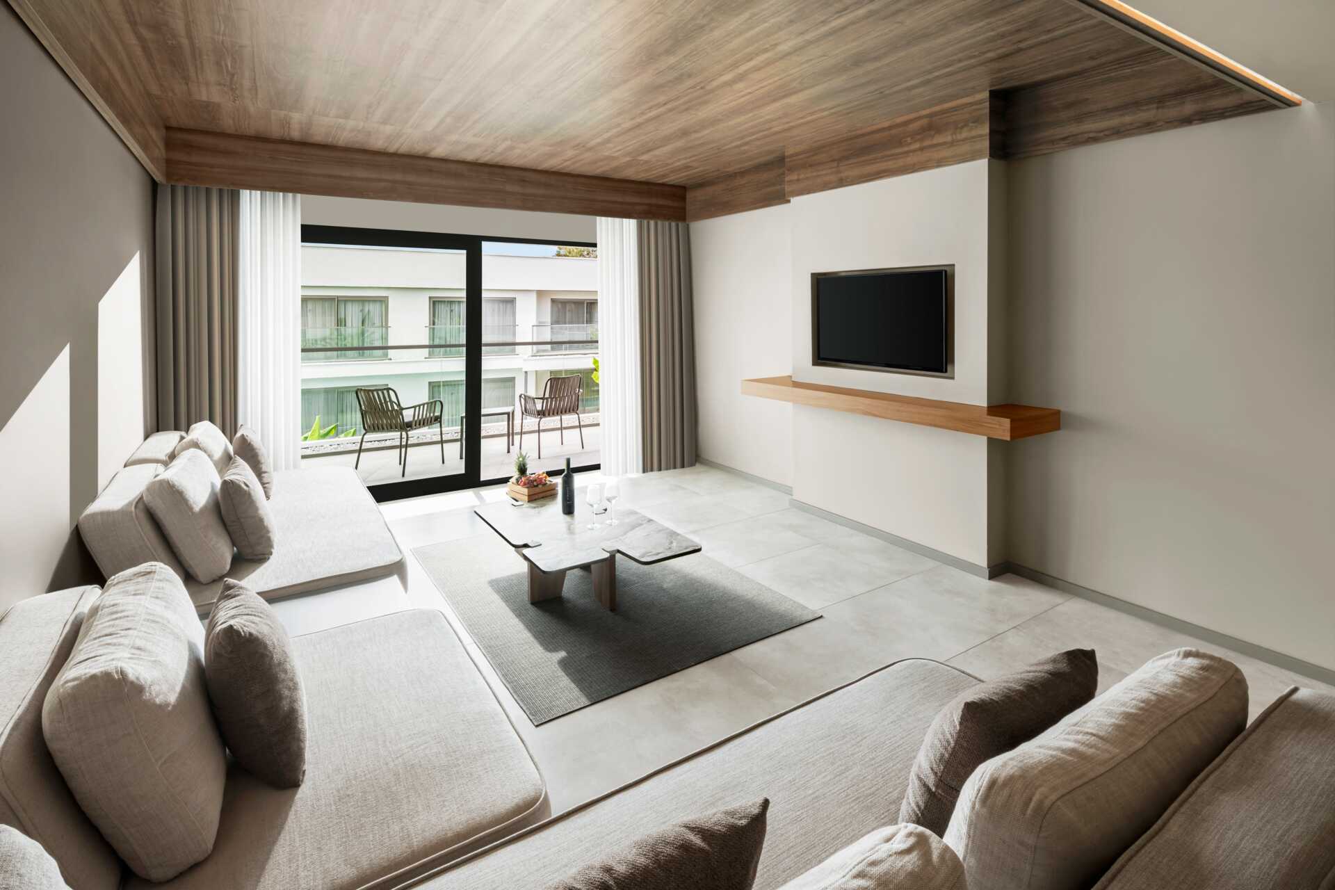 Juniorsuite med delt basseng på uteplassen. Familiesuiten består av et soverom og en stue. En dobbeltseng eller to enkeltsenger. Mulig med ekstraseng i sovesofa. Wifi, luftkondisjonering og safe inkludert. Minibar. Vannkoker samt kaffe og te. TV. Hårføner. Dusj og wc. Rengjøring 7 ggr/uke.