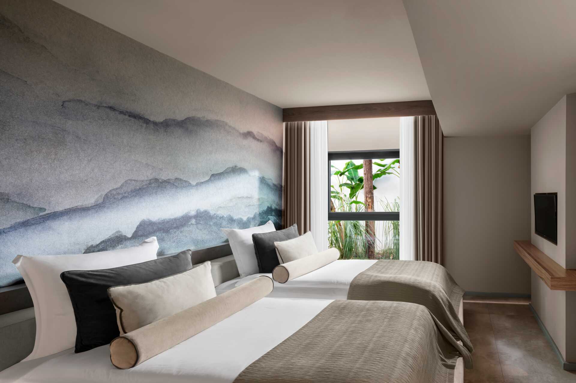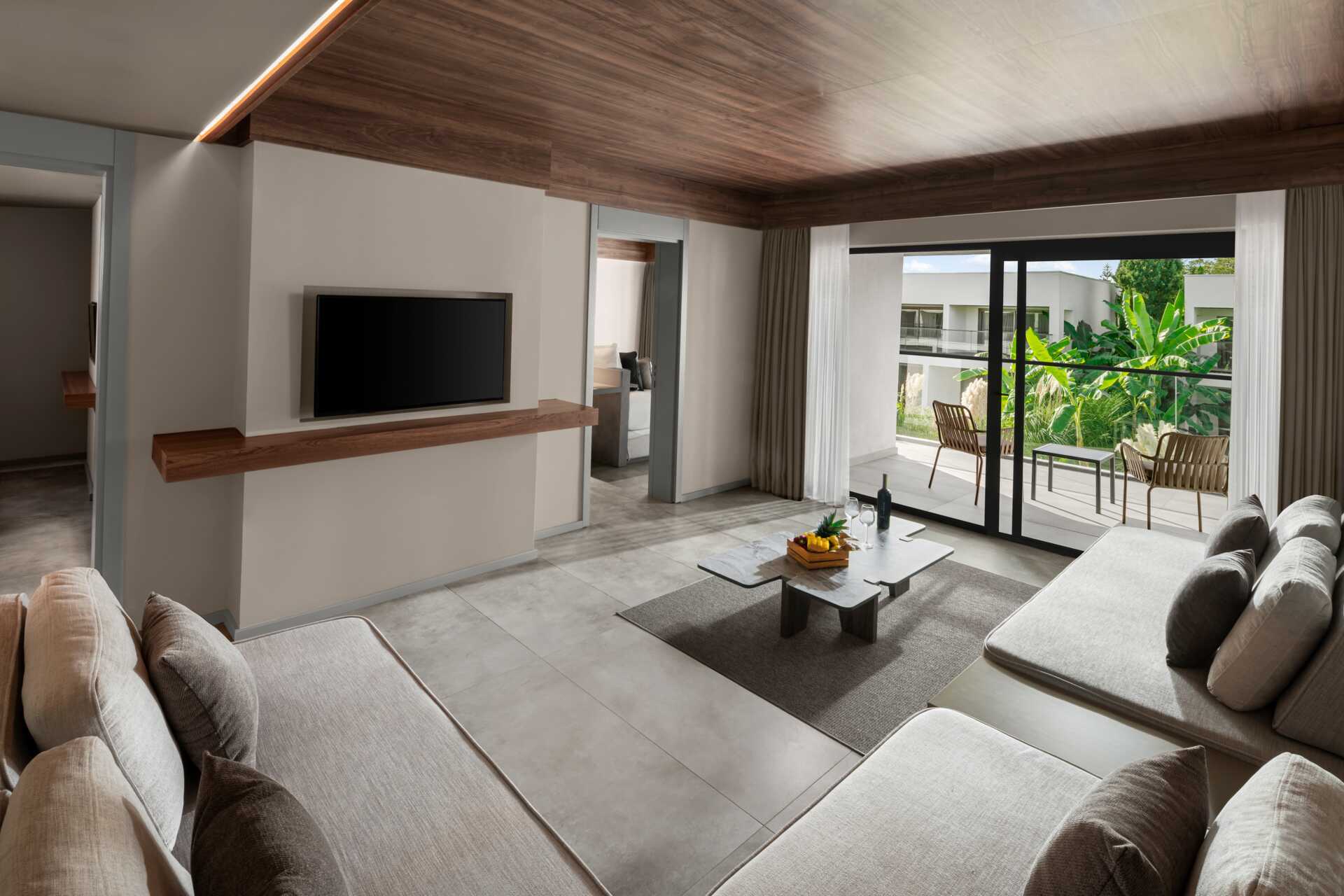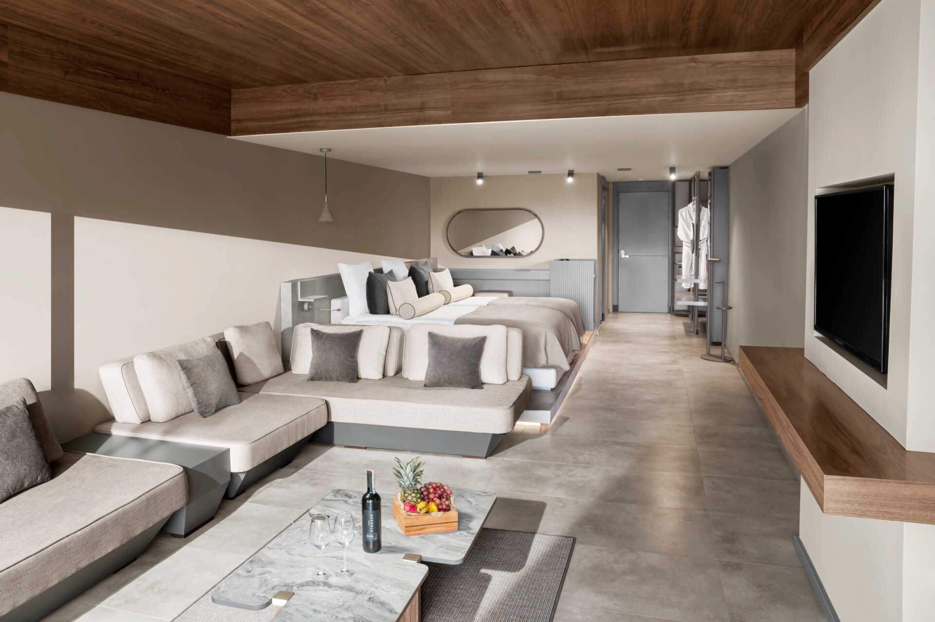 Familiesuite med balkong eller markterrasse, noen med begrenset havutsikt. Familiesuiten består av et soverom og en stue. En dobbeltseng eller to enkeltsenger. Mulig med ekstrasenger i sovesofa. Wifi, luftkondisjonering og safe inkludert. Minibar. Vannkoker samt kaffe og te. TV. Hårføner. Dusj og wc. Rengjøring 7 ggr/uke.