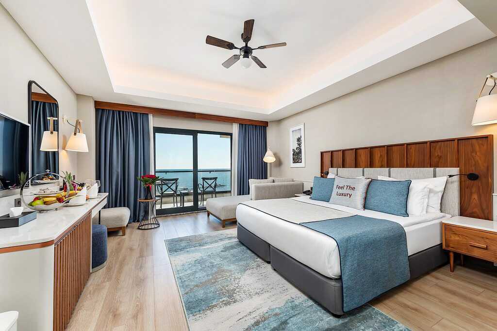 Nous avons passé un très bon séjour ! Les points positifs : • Le personnel est vraiment adorable, surtout les serveurs de la plage qui font un travail exceptionnel 👏 • Nous passions nos journées à la plage et avons toujours trouvé des transats sans avoir besoin de nous lever aux aurores. • La nourriture est excellente, variée, et les places au restaurant toujours faciles à trouver grâce à une très bonne organisation. • Les restaurants à thème qui changent entre le midi et le soir sont un vrai plus ! • Super promenade le long de la côte et des commerces à proximité pour les balades du soir. • Chambres spacieuses et propres. • La présence de petits chats dans l’hôtel : adorables ! 🐱 • Le bar/snack ouvert 24h/24 est top : glaces, sandwichs, gâteaux, etc. • De belles infrastructures sportives avec un bon choix d’activités. • L’hôtel donne une impression d’être assez compact, tout est proche (plage, piscine, restaurants…), ce qui est au final très pratique. Contrairement à d’autres hôtels de Side où il faut marcher des kilomètres entre chaque point (plage/piscine/resto/chambre), ici on gagne en confort et en temps. Les points négatifs : • La plage est rocheuse, donc chaussures aquatiques indispensables. • Une coupure d’électricité a eu lieu en fin de journée jusqu’au milieu de la nuit (pas de clim, ascenseurs bloqués, repas limités, etc.). L’hôtel a toutefois bien réagi : mot d’excuse, explications et petites attentions en chambre. • La journée mousse était décevante : le DJ est arrivé après la mousse, a mis la musique très forte seulement 10 minutes puis est reparti. Cette animation mériterait vraiment d’être améliorée. Dans l’ensemble, un hôtel de qualité où nous avons passé de superbes vacances malgré quelques points perfectibles. Nous le recommandons sans hésitation !