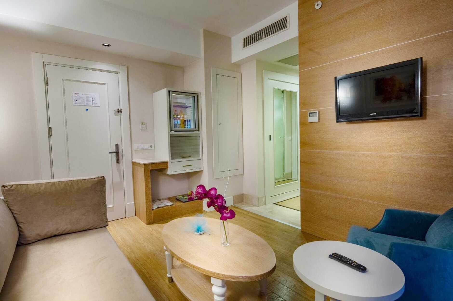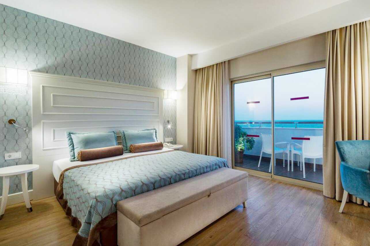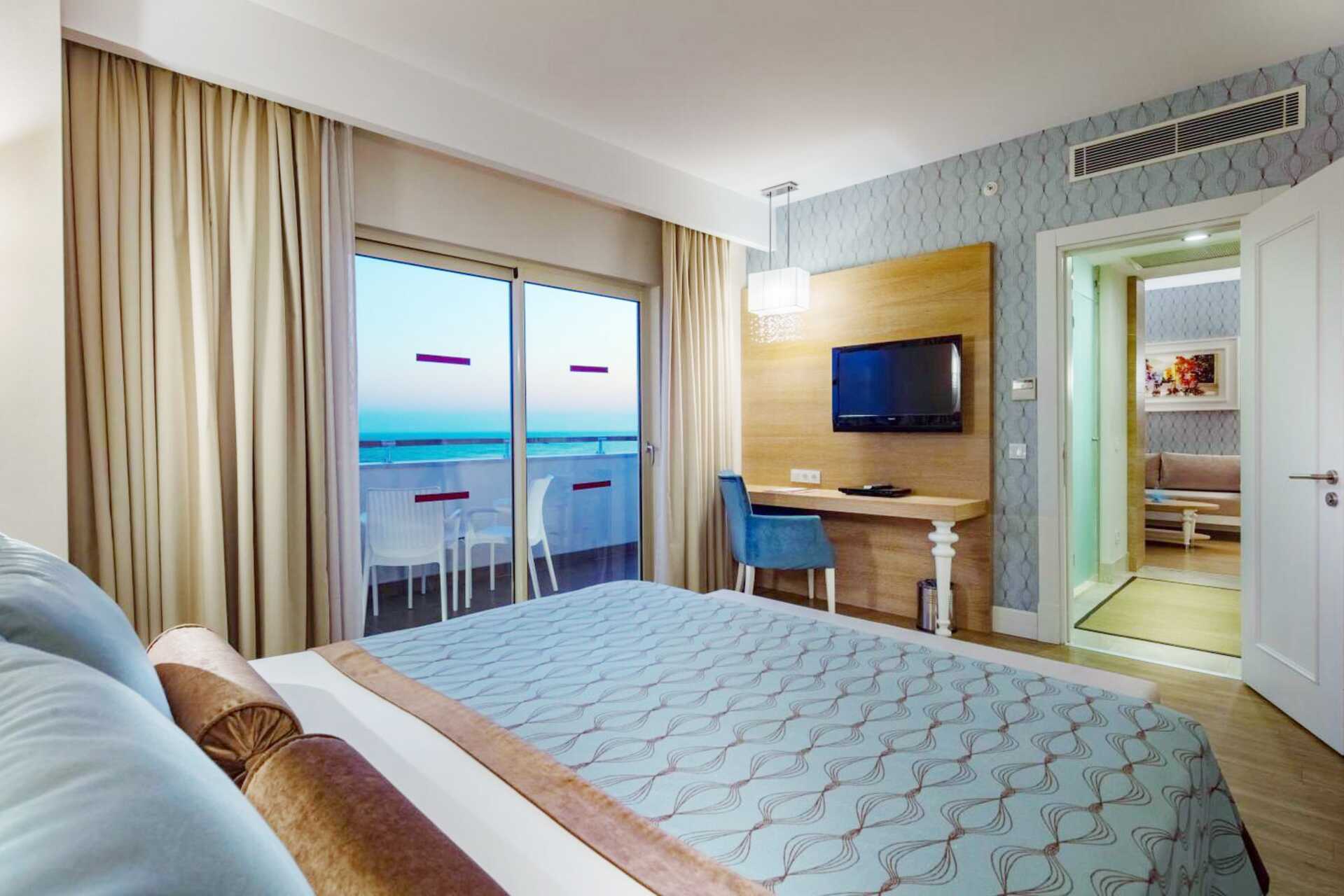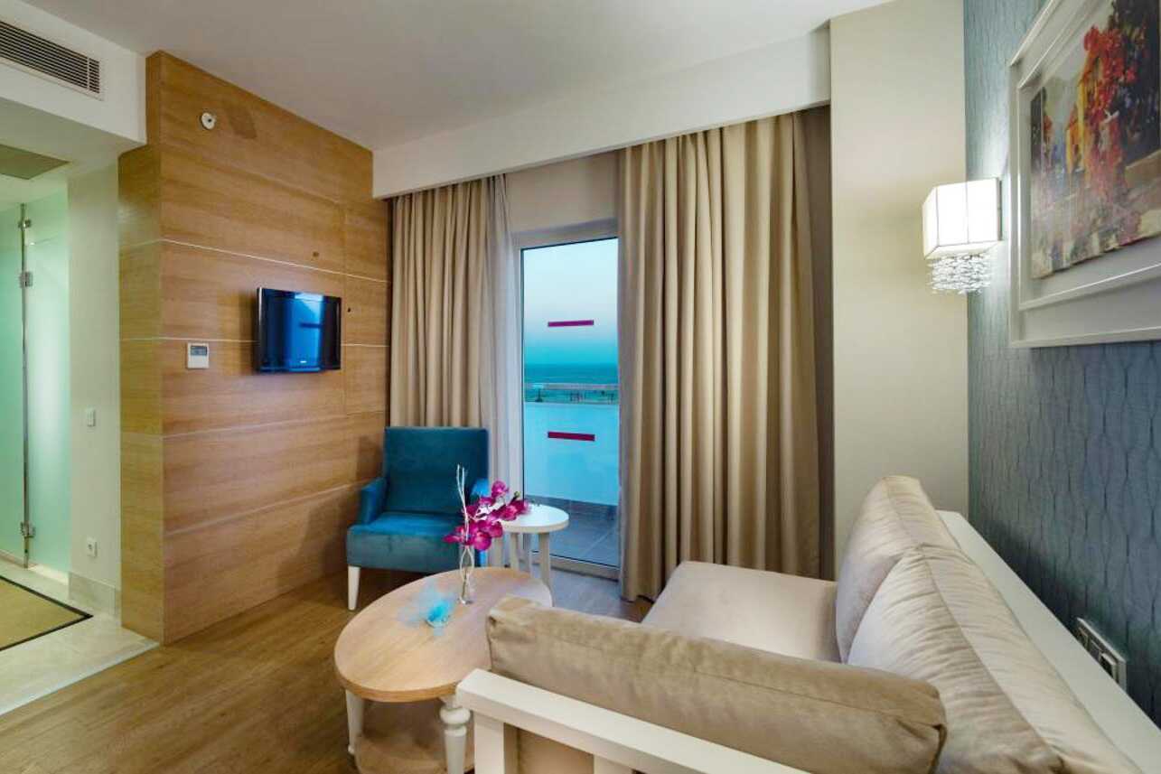Suite med balkong og havutsikt. Suitene har et soverom med en dobbeltseng og en stue med mulighet for ekstraseng i sovesofa. Wifi, luftkondisjonering og safe inkludert. Kjøleskap. Vannkoker samt kaffe og te. TV. Badekåper og tøfler Hårføner. Dusj og wc. Rengjøring 7 ggr/uke.
