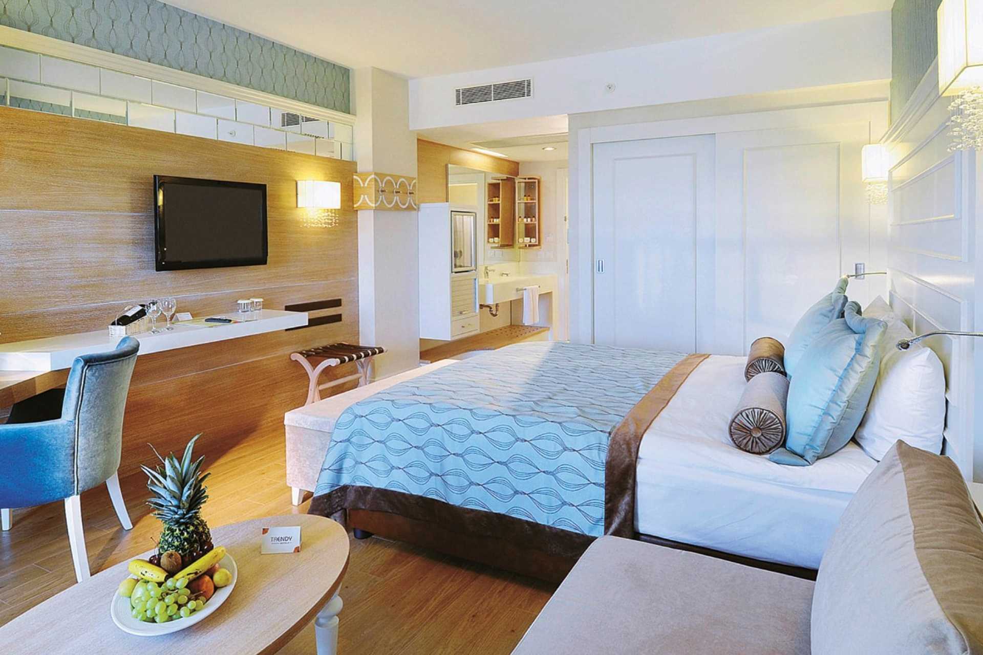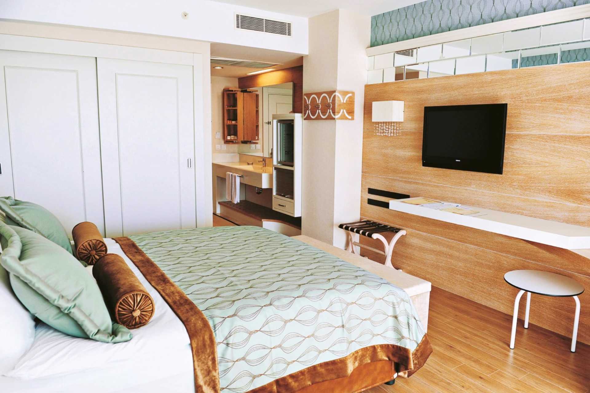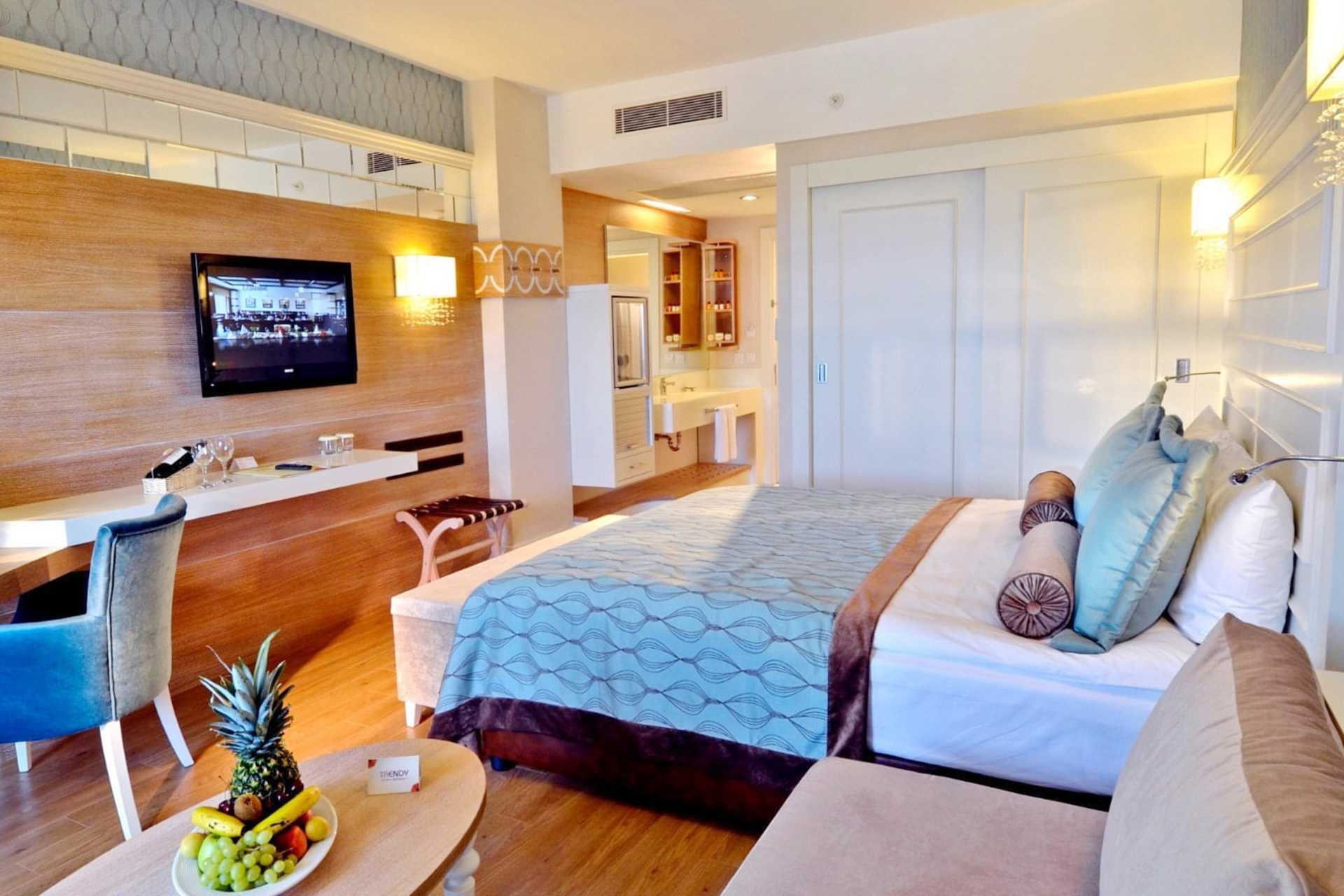 Suite med balkong og havutsikt. Suitene har et soverom med en dobbeltseng og en stue med mulighet for ekstraseng i sovesofa. Wifi, luftkondisjonering og safe inkludert. Kjøleskap. Vannkoker samt kaffe og te. TV. Badekåper og tøfler Hårføner. Dusj og wc. Rengjøring 7 ggr/uke.