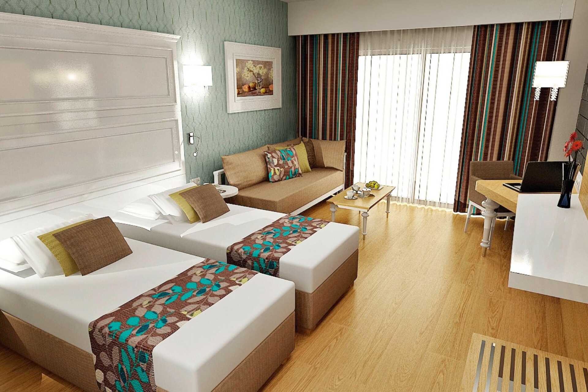 Familierom med balkong, noen med begrenset havutsikt. To soverom, ett med en dobbeltseng og ett med mulighet for ekstrasenger i enkeltseng eller sovesofa. Wifi, luftkondisjonering og safe inkludert. Kjøleskap. Vannkoker samt kaffe og te. TV i hvert rom. Badekåper og tøfler. Dusj og wc, hårføner. Rengjøring 7 ggr/uke.