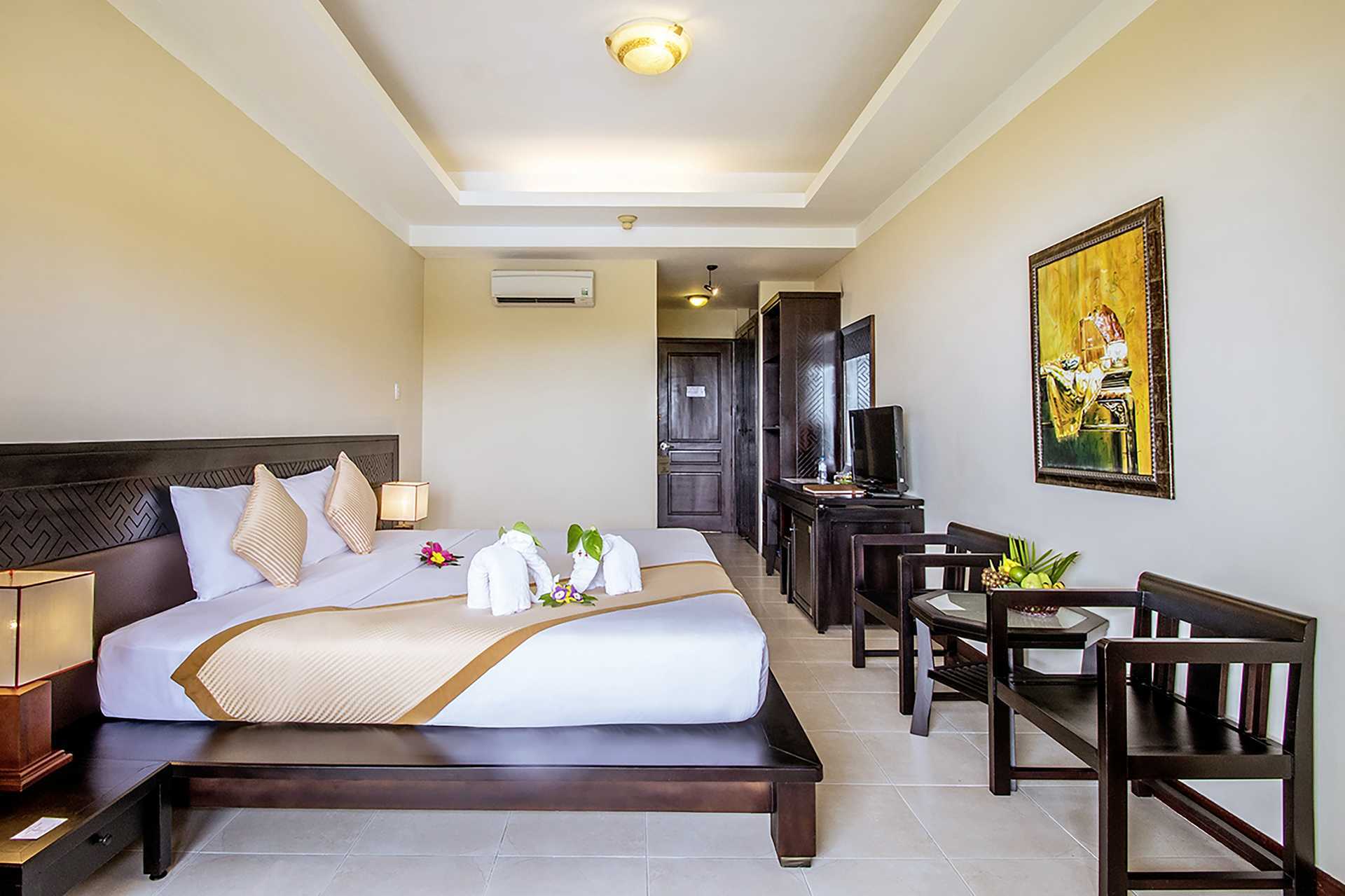 Deluxerom med meget liten balkong og begrenset havutsikt. Rommene ligger i hovedbygningen. En dobbeltseng eller to enkeltsenger. Mulig med ekstraseng i feltseng. Wifi, luftkondisjonering og safe inkludert. Minibar, to små flasker vann per dag inkludert. Vannkoker samt kaffe og te. TV. Tøfler. Hårføner. Badekar eller dusj samt wc. Rengjøring 7 ggr/uke.